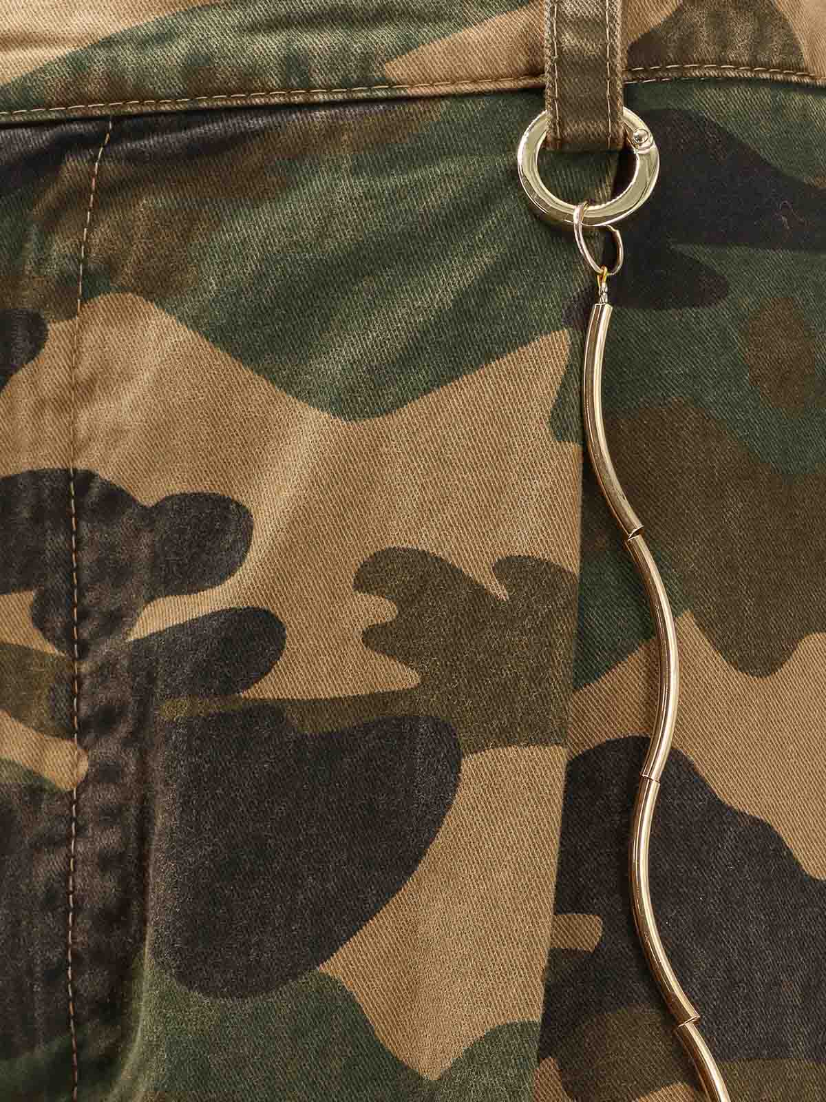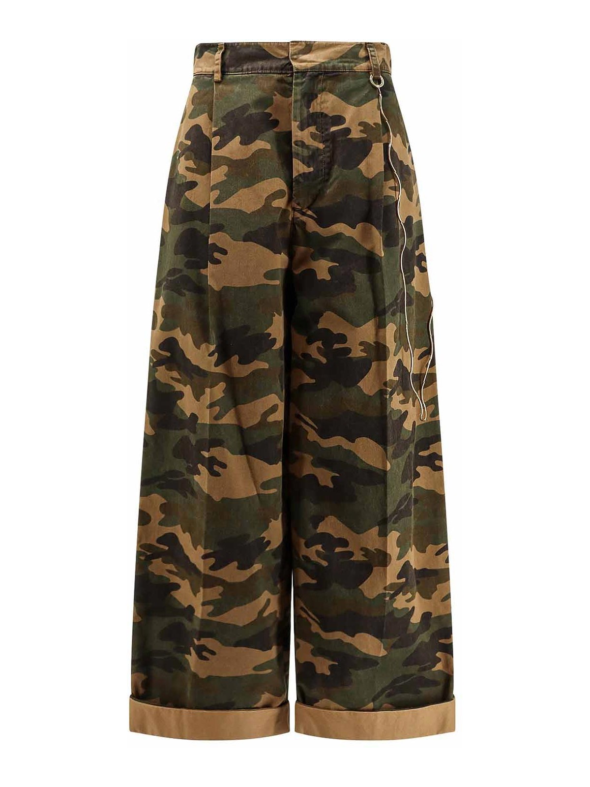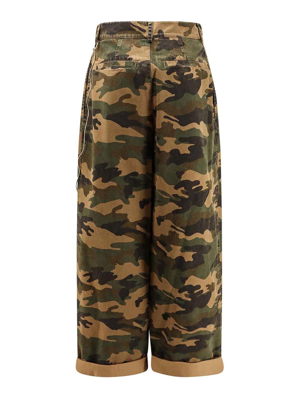 フロントにはボタンとファスナー開閉のウェルトポケット、プリーツディテール、イタリア製メタルチェーン 100% コットン