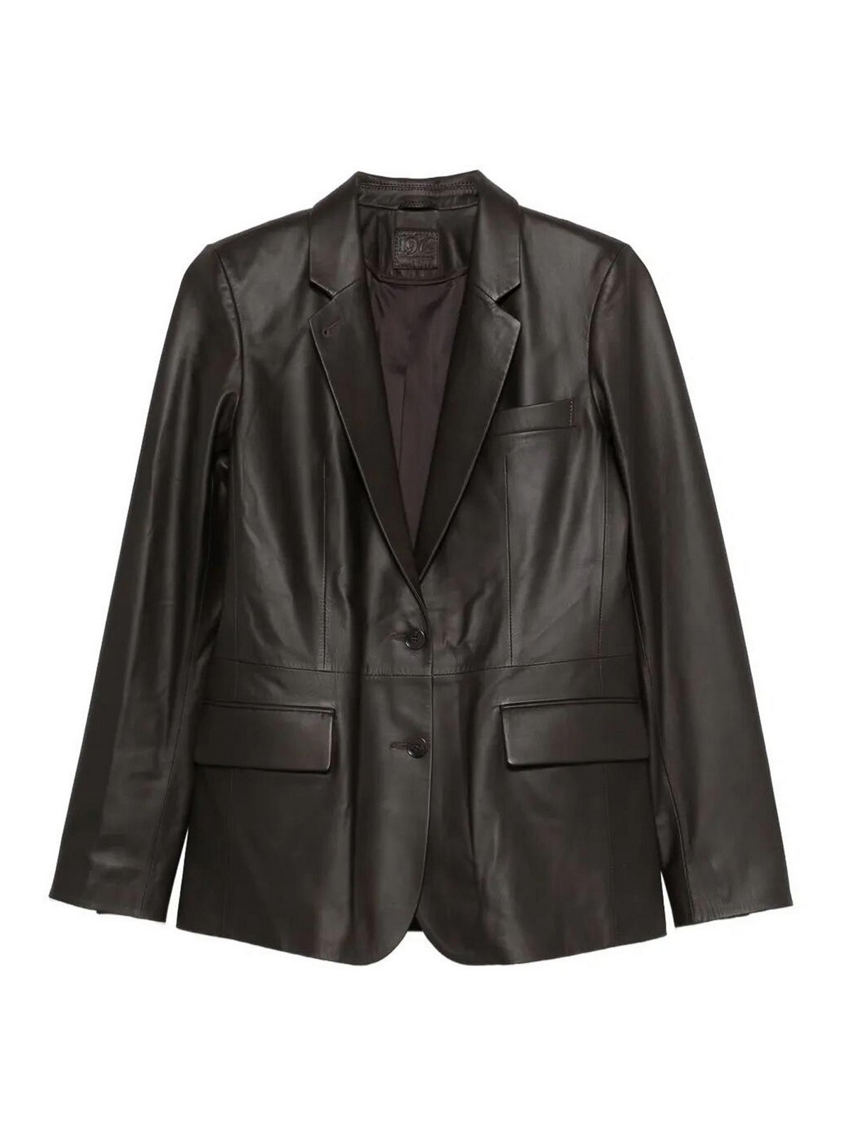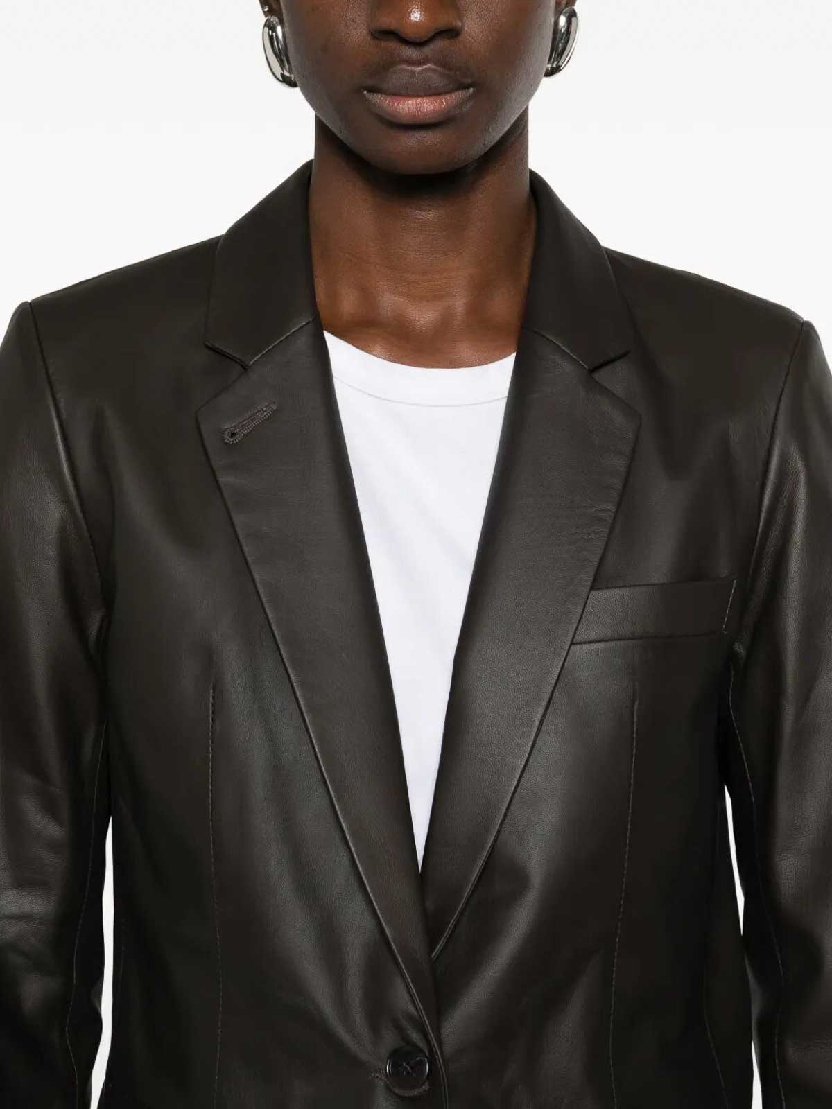 洗練された女性らしいデザインのクラシックなレザーブレザー。