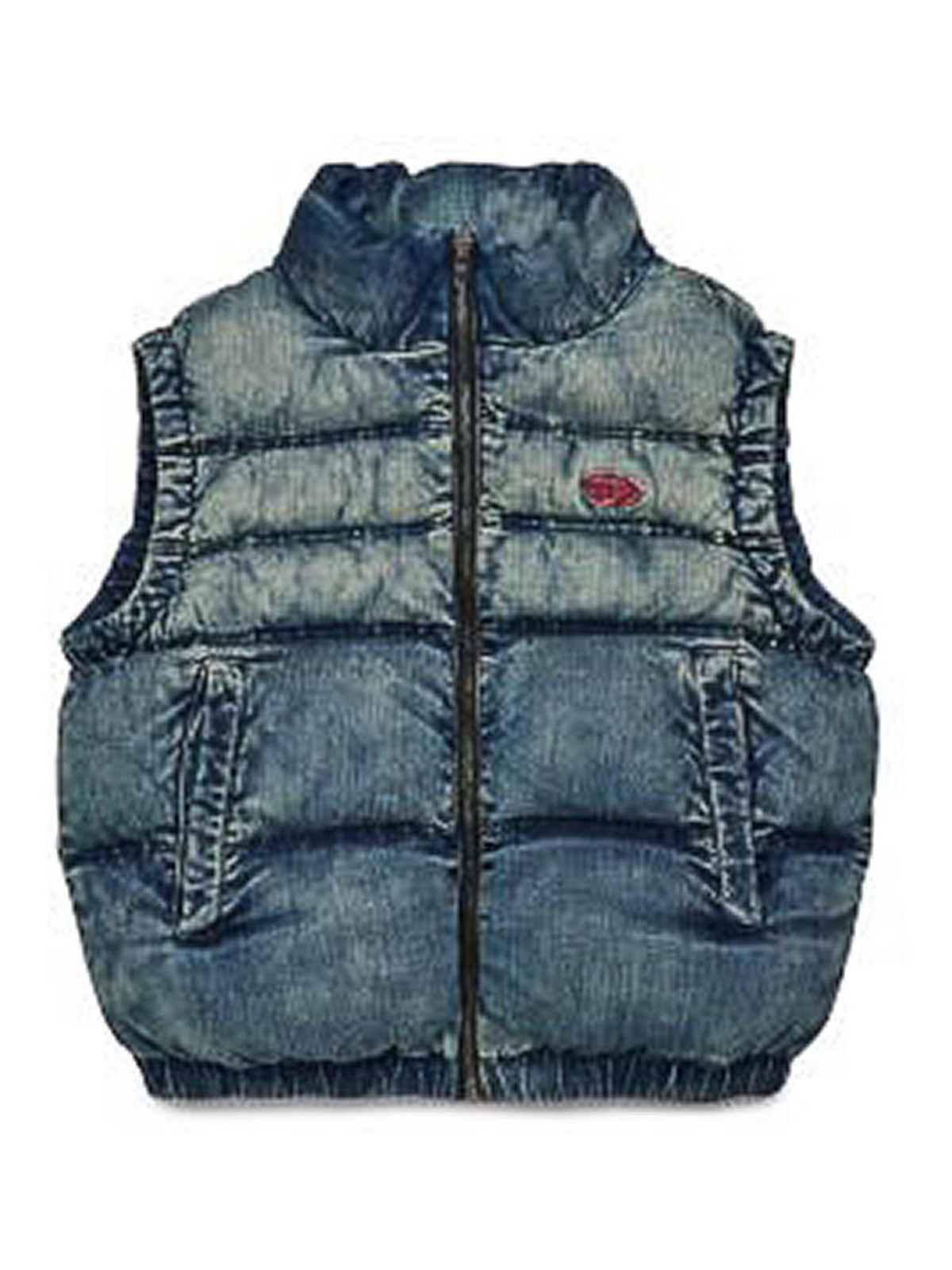 ロゴ入りノースリーブジャケット、モックカラー、ジッパー、ウェルトポケット