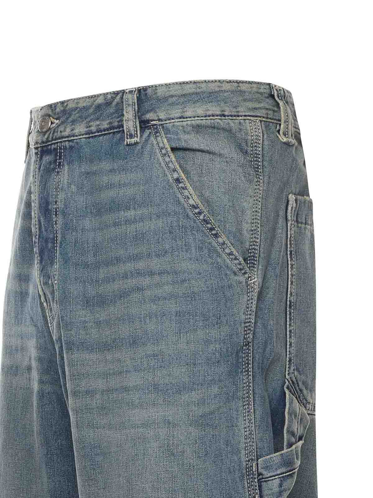 コットンデニム製、ストレートレッグ、ミッドライズ、ロゴパッチ、ベルトループ、多目的ポケット、デザイナーカラー:ライトブルー