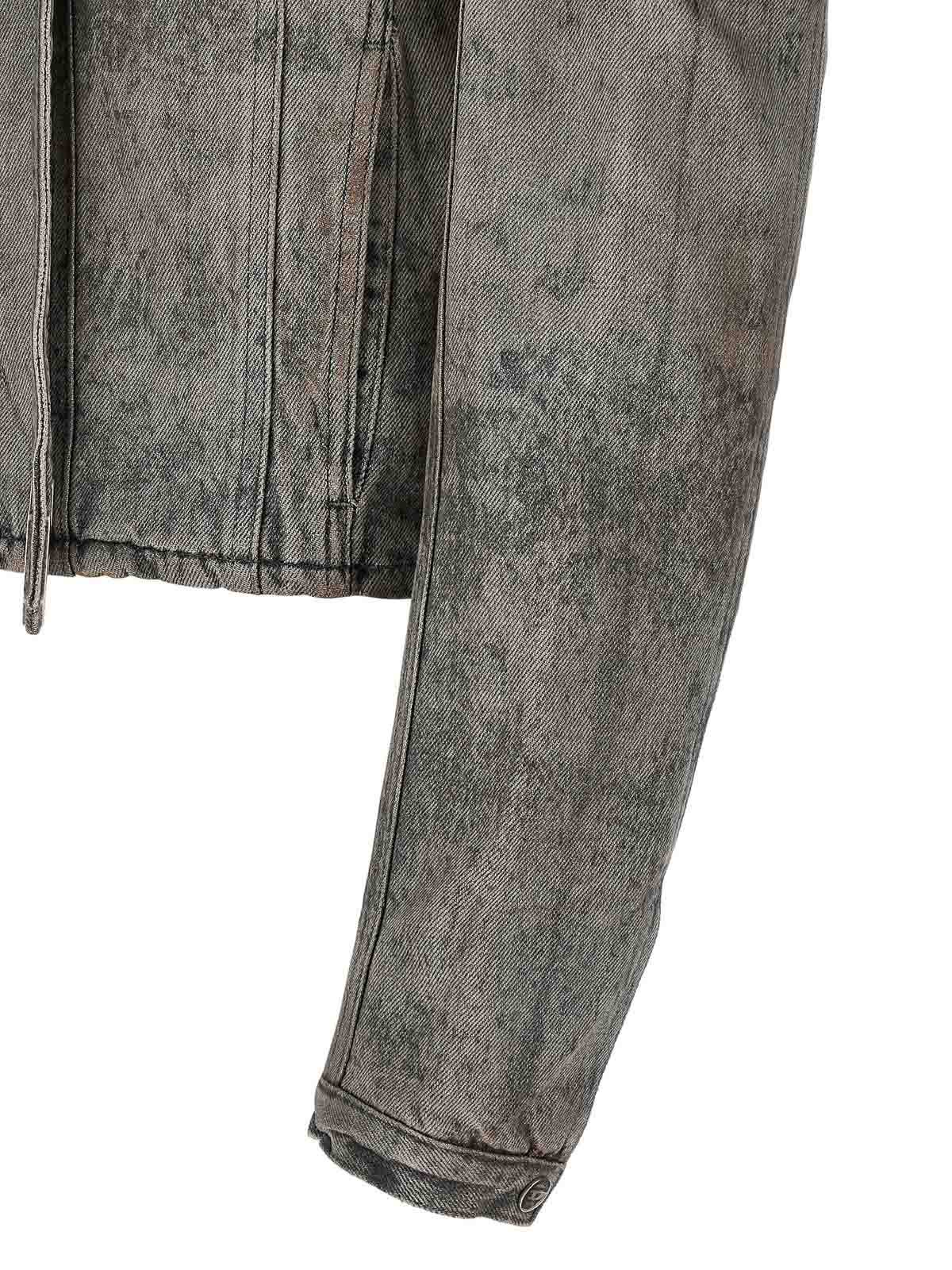 D-Vulmar-FSIのコットンとヘンプサテンのデニムジャケット。レーザー加工された金属糸に硫黄ベースの顔料コーティングを施し、硫黄ベースの顔料コーティングを施したレーザー加工を施した金属糸と、首元を包み込むような長いウェビングのようなラウンドカラー。ロゴボタンで閉じ、最後のディテールはメタルD、フロントジッパー、ポケット、ロングカフスリーブ、裏地。この衣服の生き生きとした外観は、職人技と革新的な処理によって得られています。したがって、衣服と衣服の外観が不均一であることは、独自性の特徴として理解する必要があります。