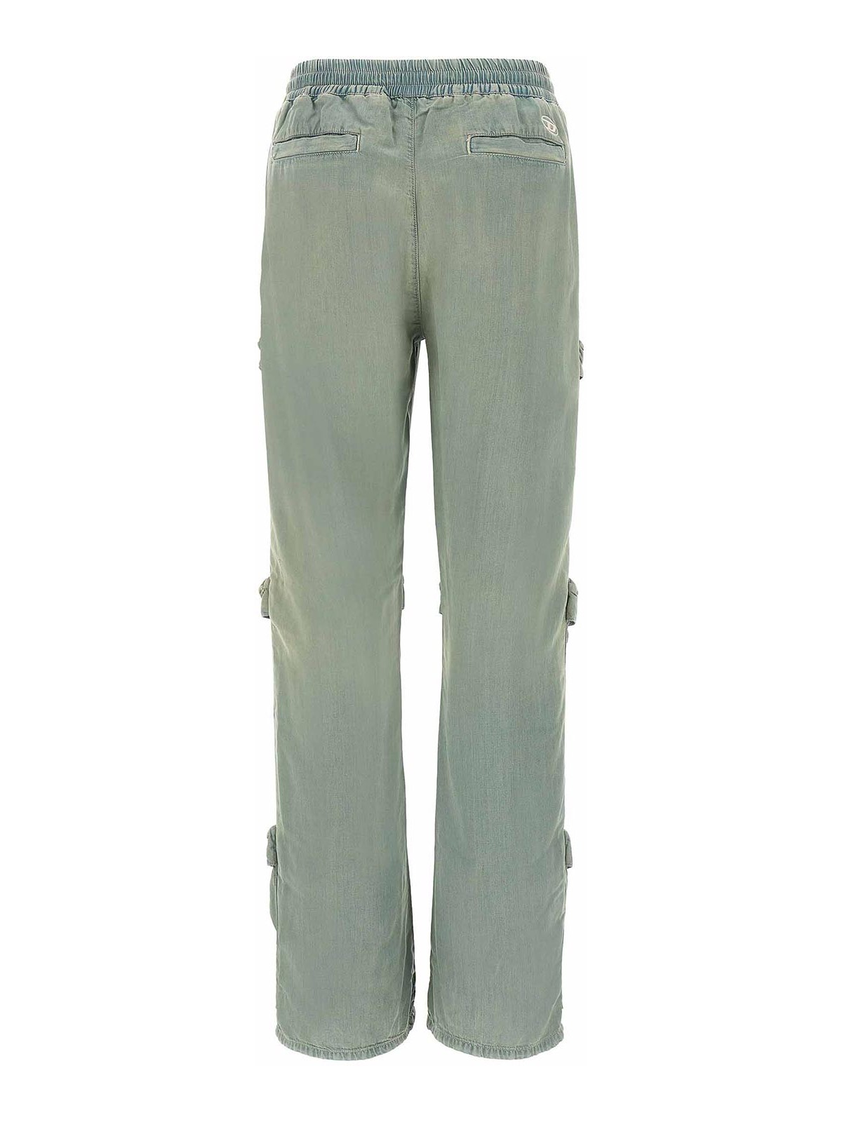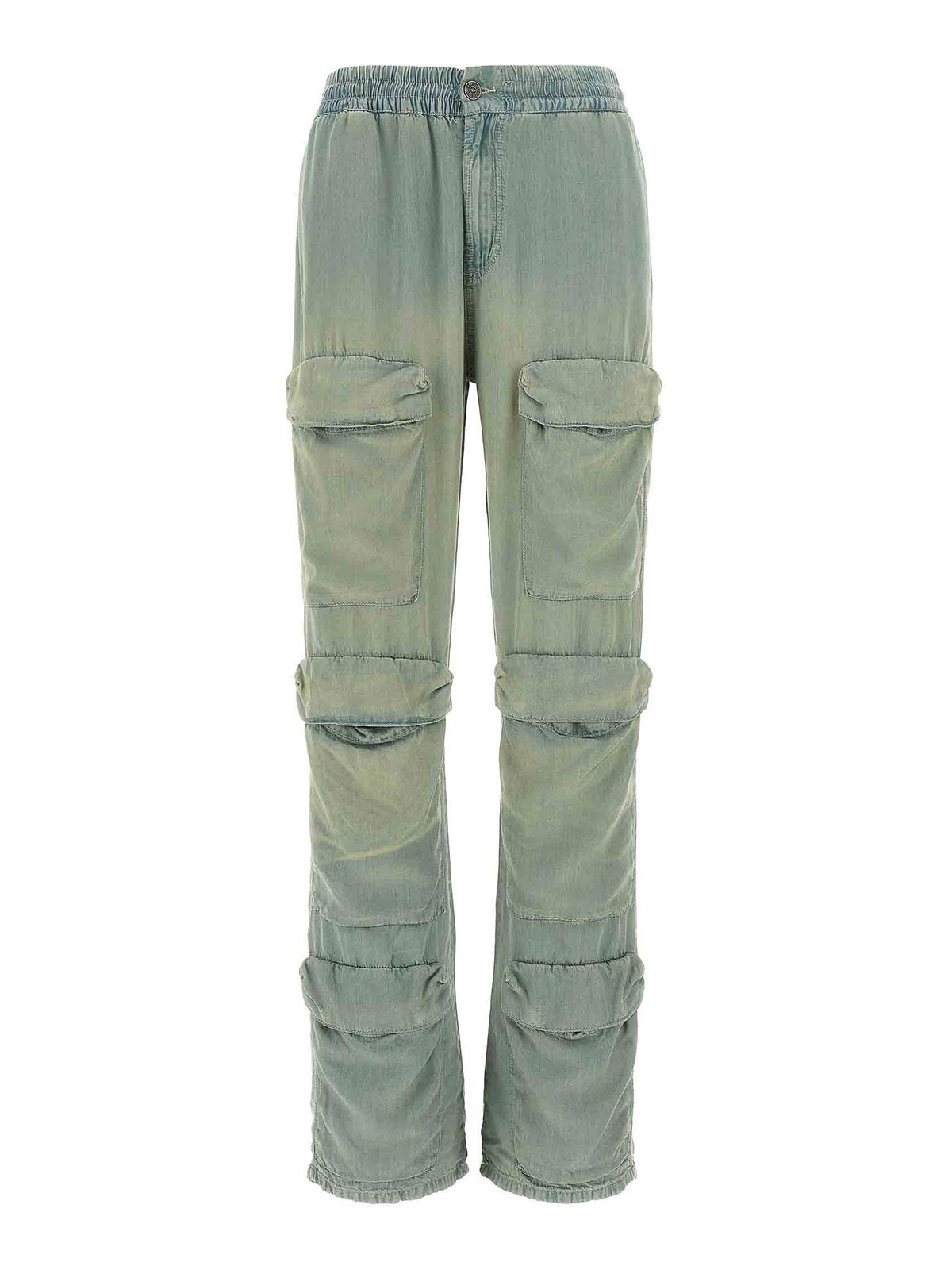 d-pocky-sのユーズドエフェクトストーンウォッシュテンセルリヨセルジーンズは、フロントポケット、ストレートレッグ、ドローストリング、伸縮性ウエストバンド、ジッパー、フロントボタンクロージャー、ポケットが付いたカーゴスタイルのジーンズです。