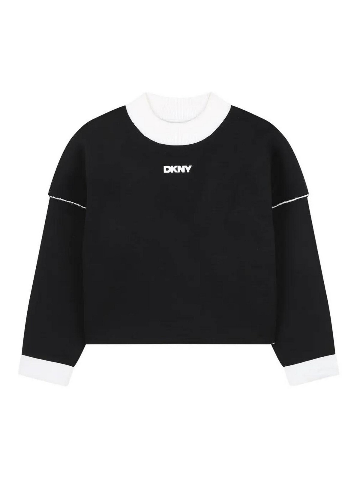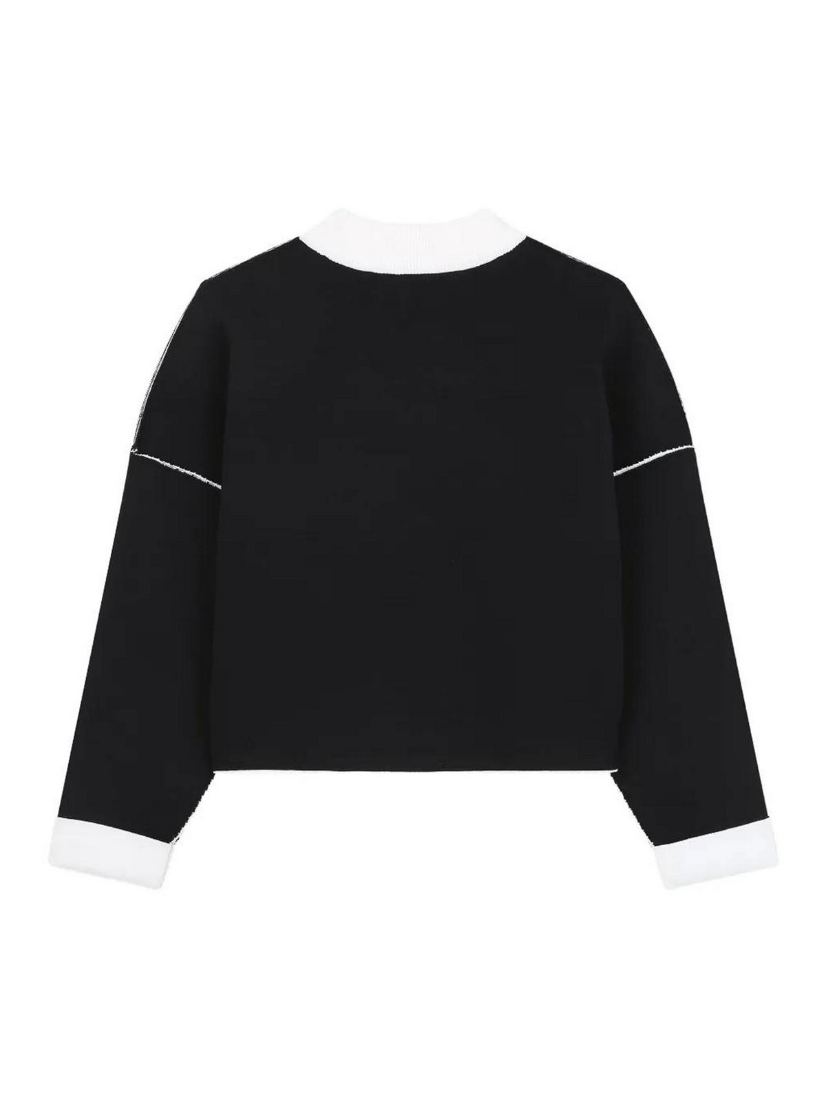 ブラックロゴ入りプルオーバー、クルーネック、ロゴスリーブ、ローショルダーステッチ