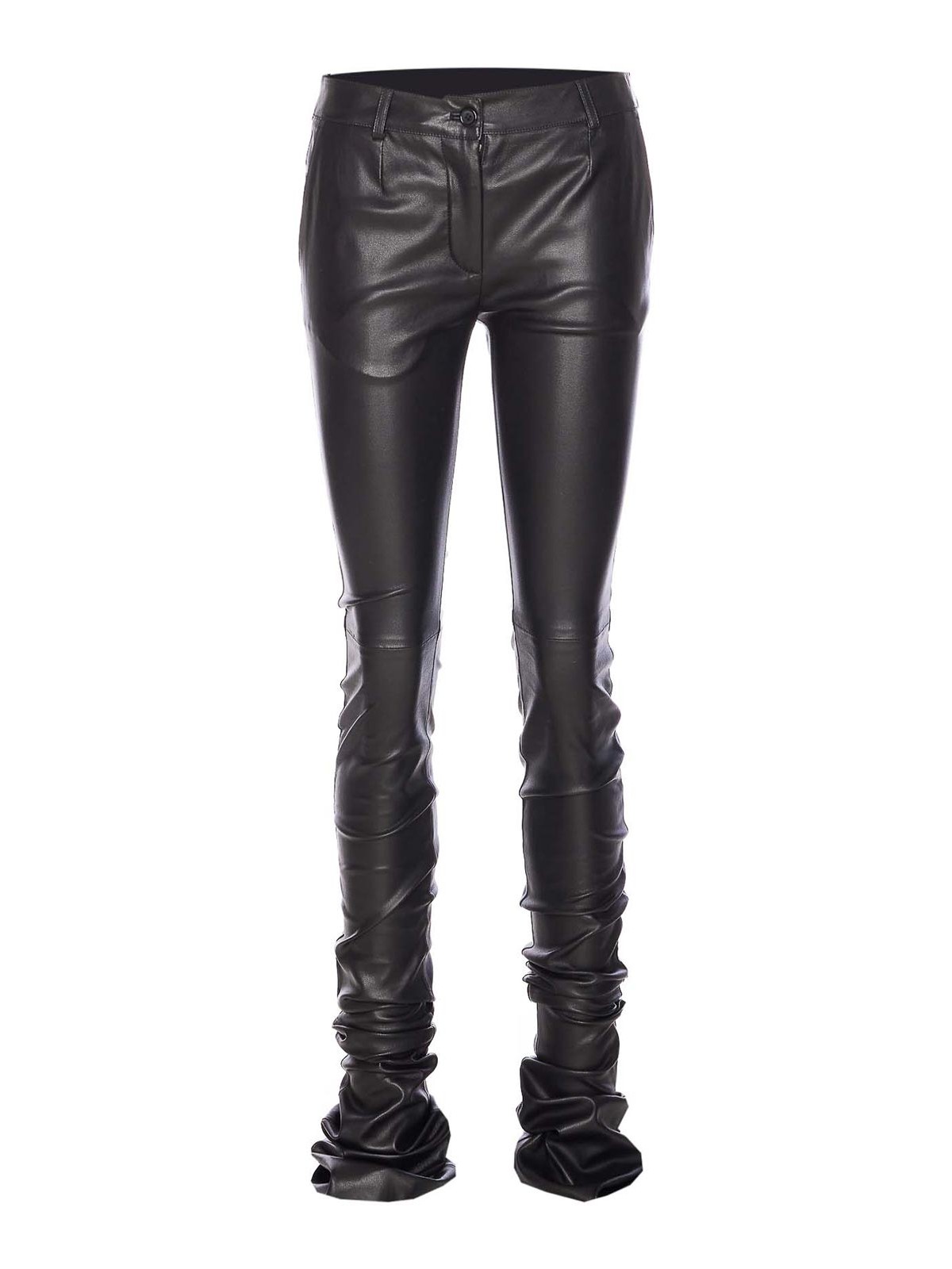 DOLCE & GABBANA: レザートラウザー - レザーパンツ - 黒