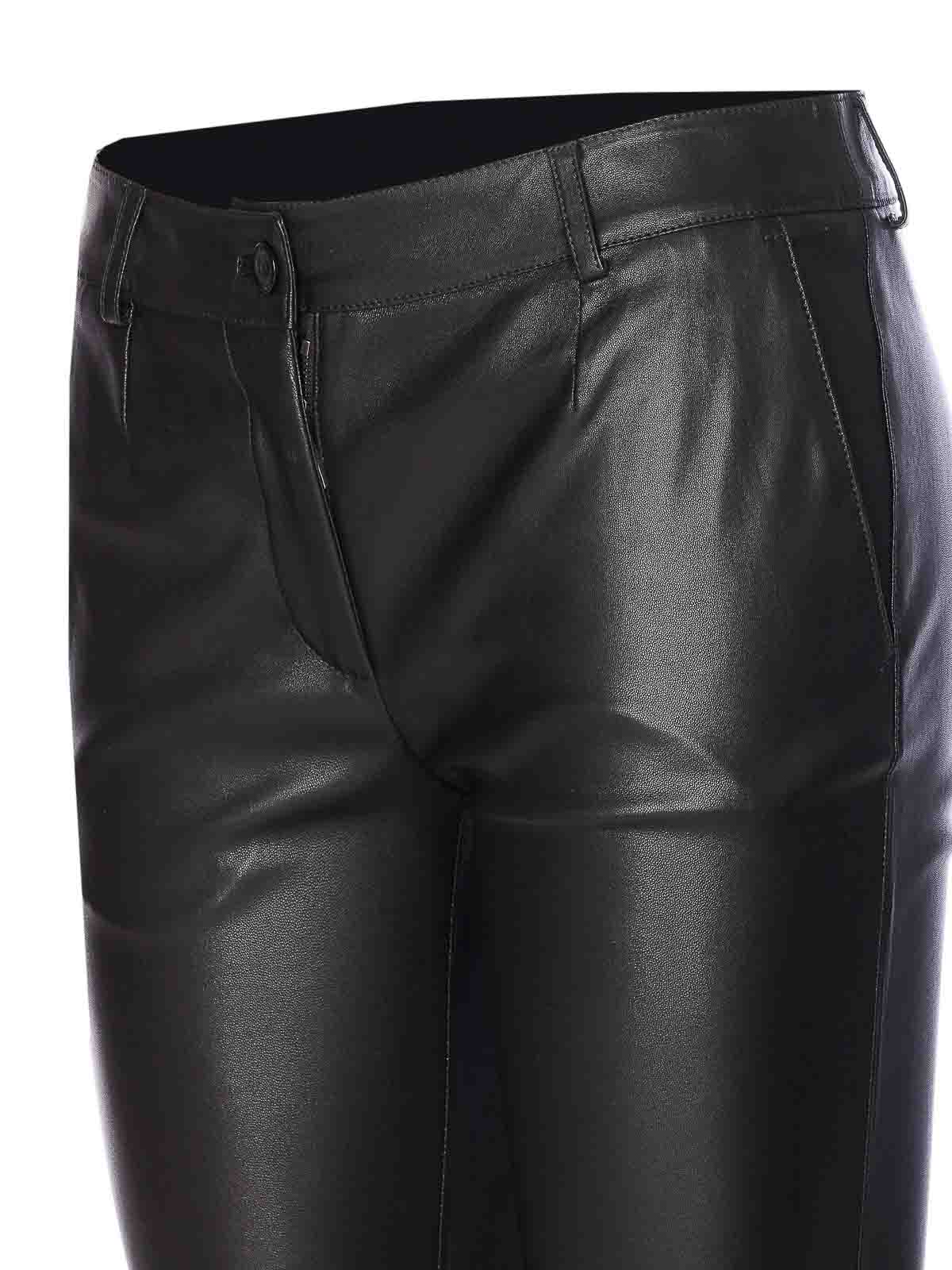 Dolce&Gabbana ブラックレザーパンツ、サイドポケット、タイトフィット、下部にフリル