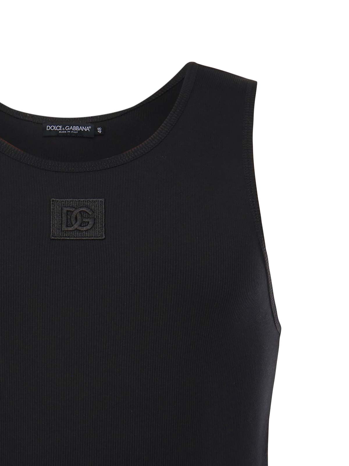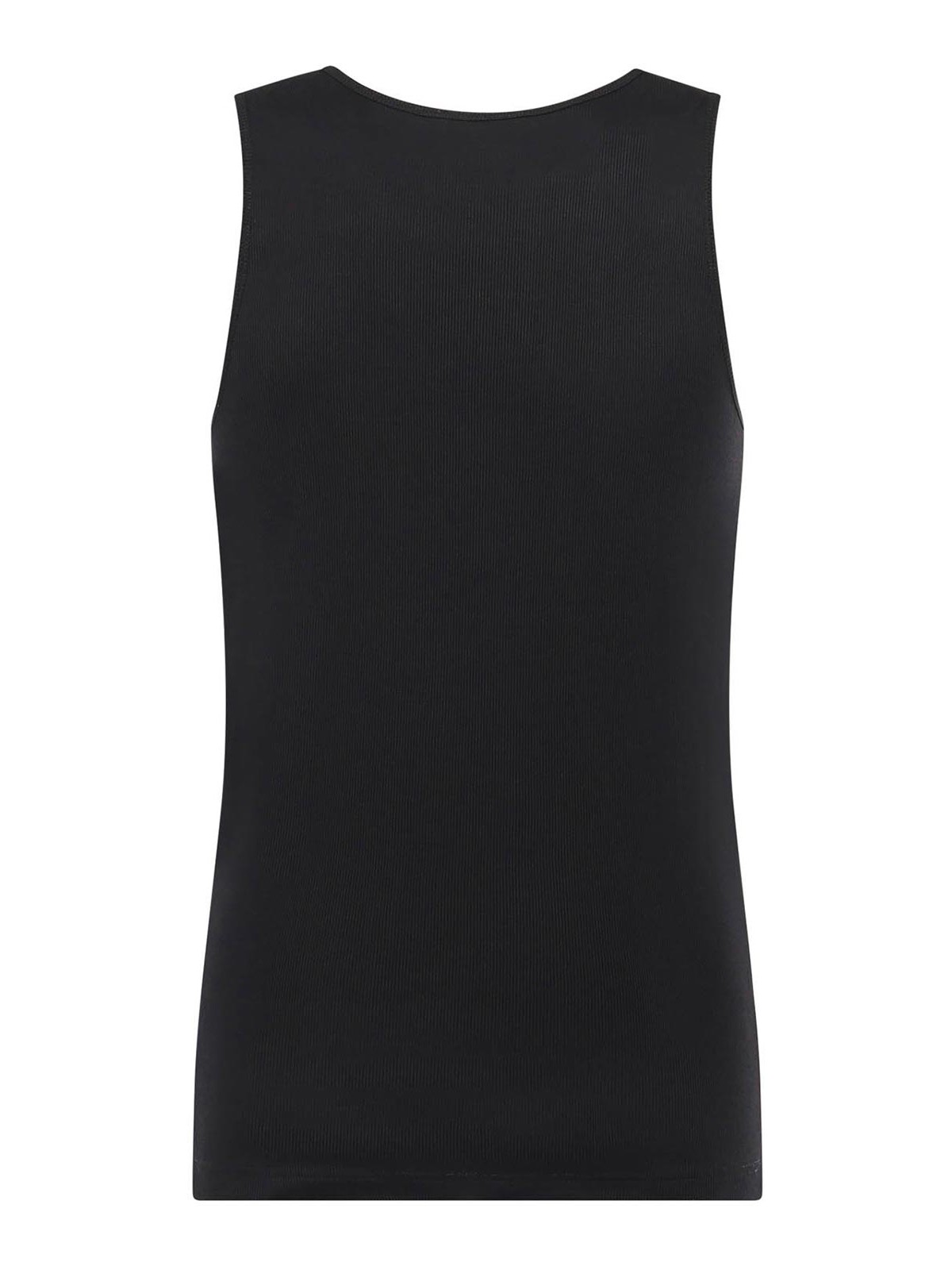 ノースリーブ、前面にトーン・オン・トーンのロゴ、スリムフィット、イタリア製、表示サイズは48、色:黒