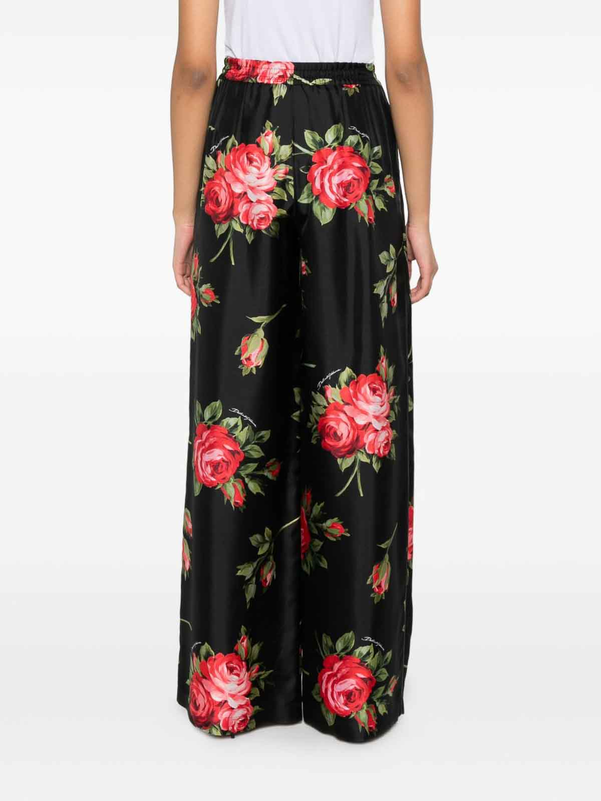 ドルチェガッバーナの花柄プリントのワイドレッグブラックパンツ