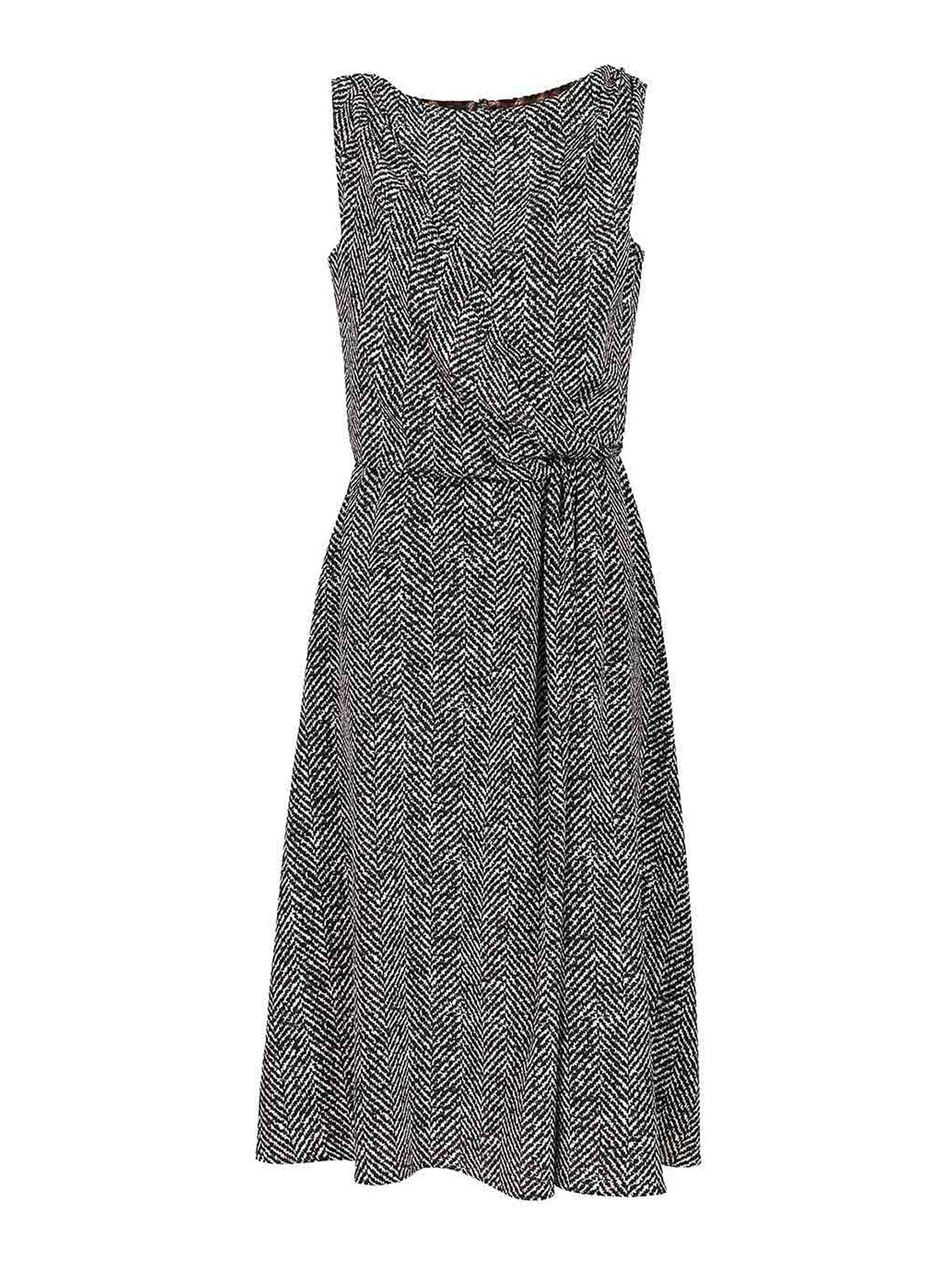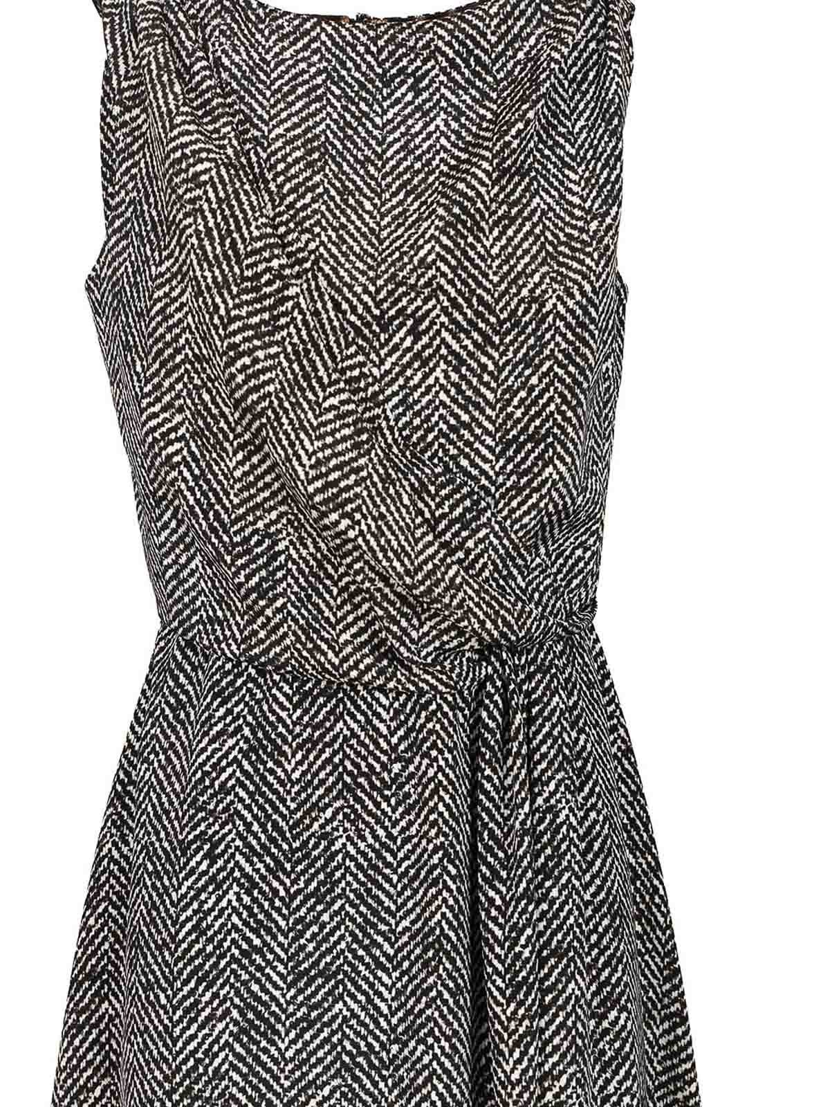 シェブロンプリントのヘビークレープドレス。ボートネック。右側にプリーツが入ったボディス。ファスナー。