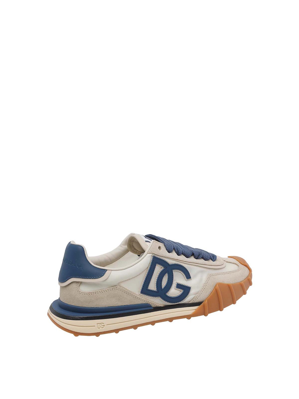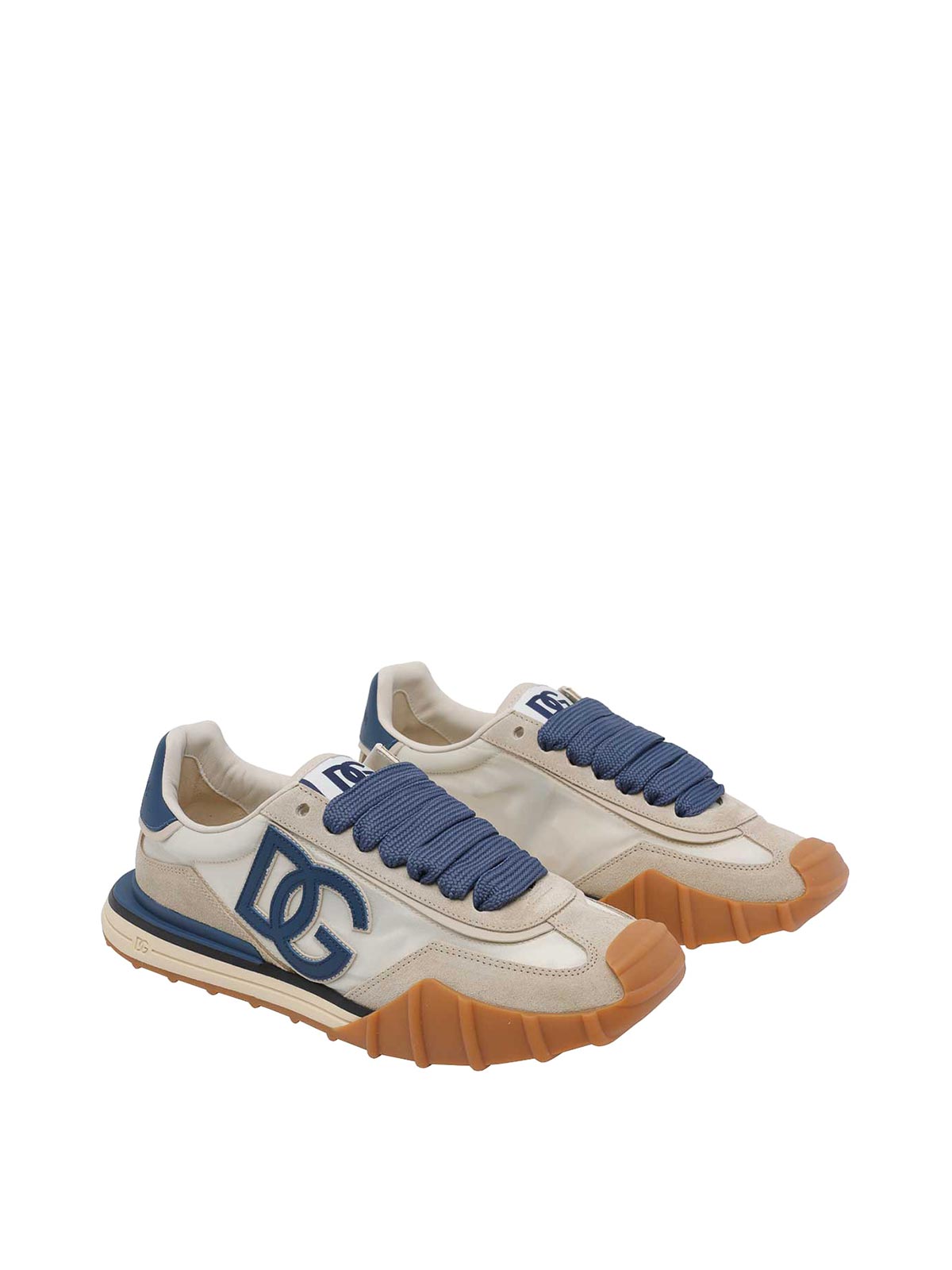 ドルチェ&ガッバーナベージュDGクッションスニーカー、ラウンドトゥ、ラテラルDGロゴ、レースクロージャー