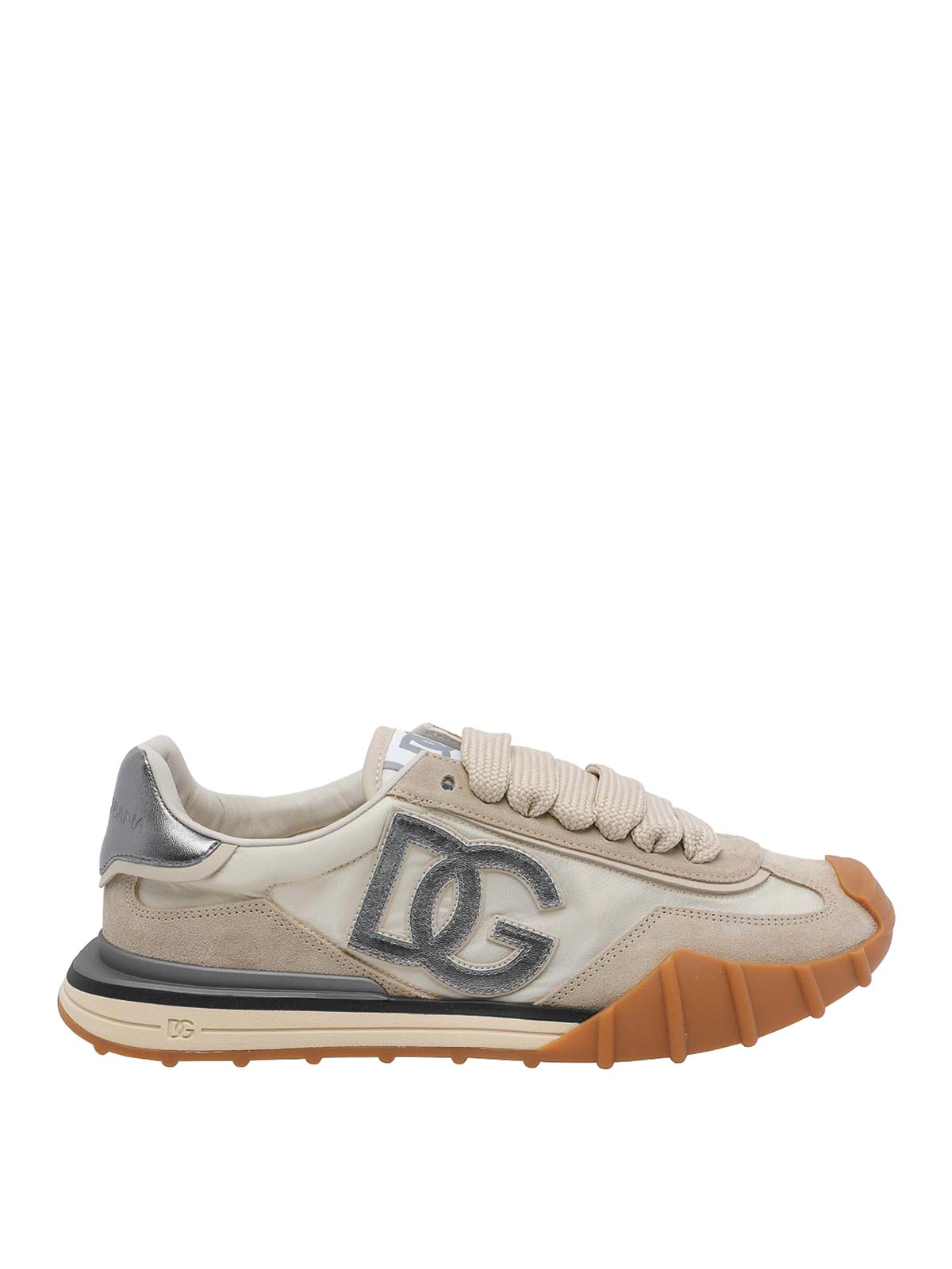 ドルチェ&ガッバーナベージュDGクッションスニーカー、ラウンドトゥ、ラテラルDGロゴ、レースクロージャー