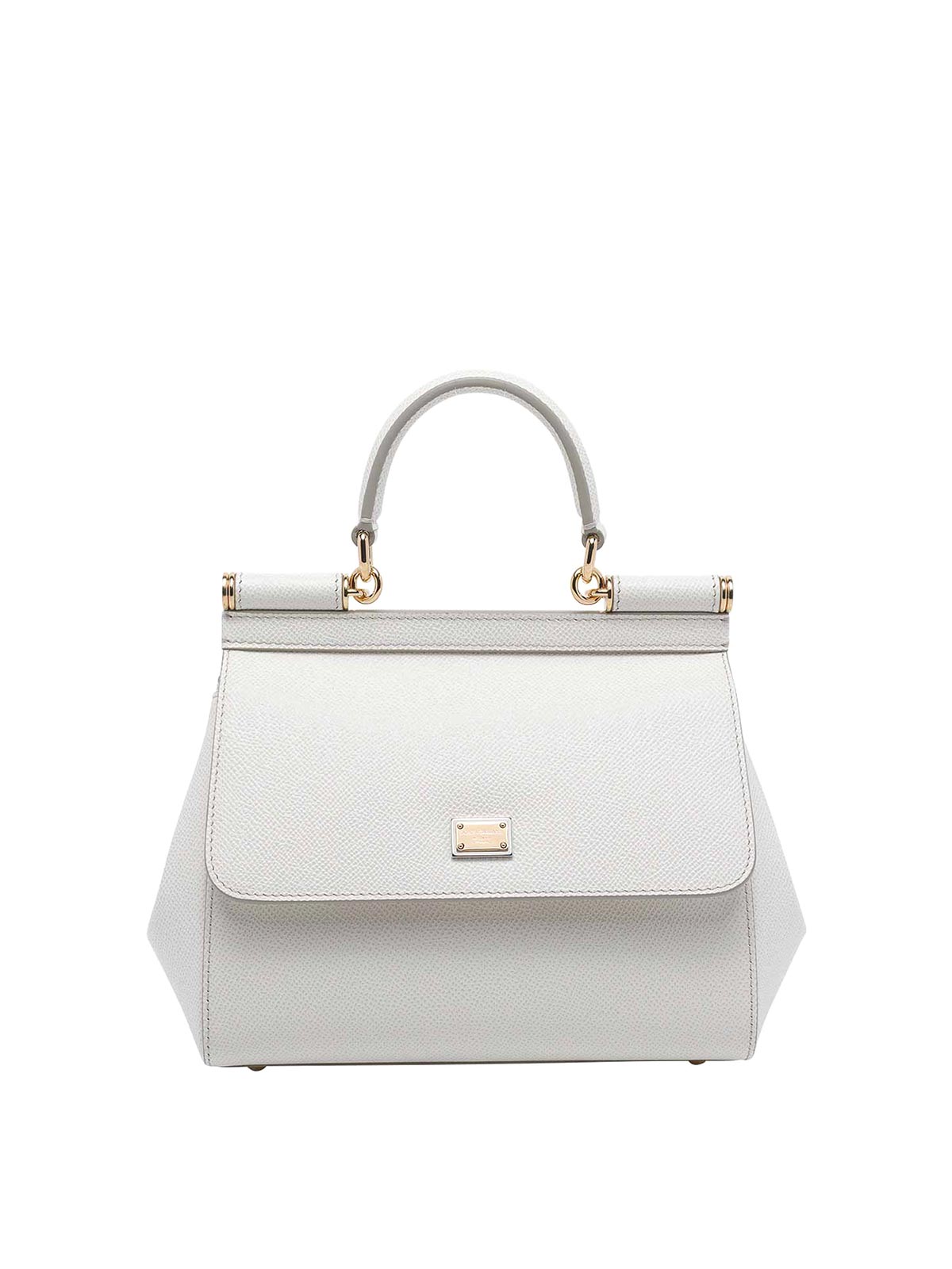 Dolce&Gabbana ホワイトシチリアハンドバッグ、プッシュロック留め、インナースロット1つ、オープンポケット1つ、ハンドル1つ、調節可能で取り外し可能なショルダーストラップ、フロントにロゴタグ