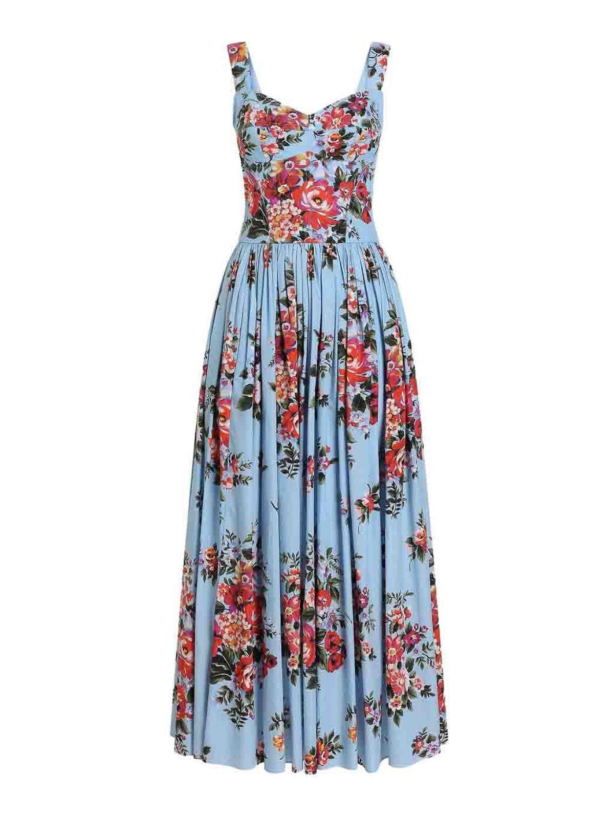 ドルチェ&ガッバーナの花柄プリントをあしらったブルーのロングドレス
