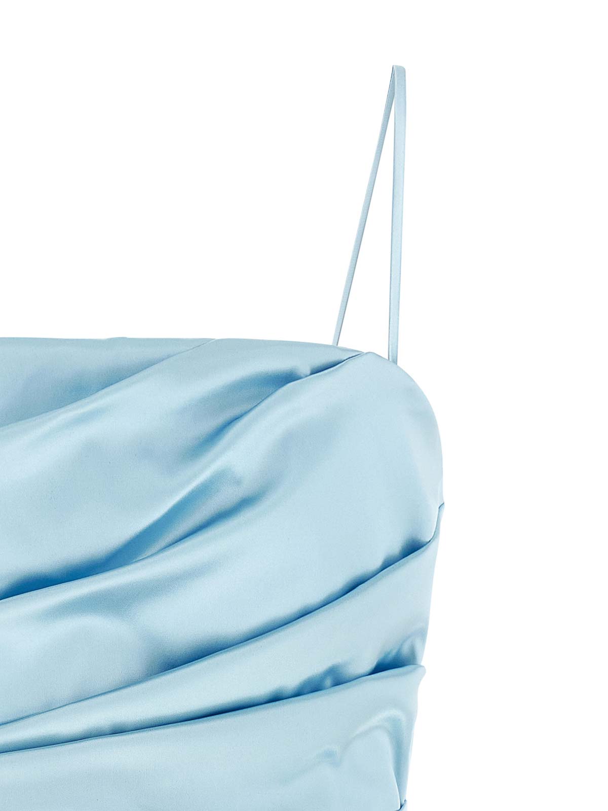 ドレープとプリーツをあしらったストレッチサテンのノースリーブミニドレス。細いストラップ、フロントとバックにスクエアネック、インナースラットとバックファスナー、シルクの裏地が付いています。