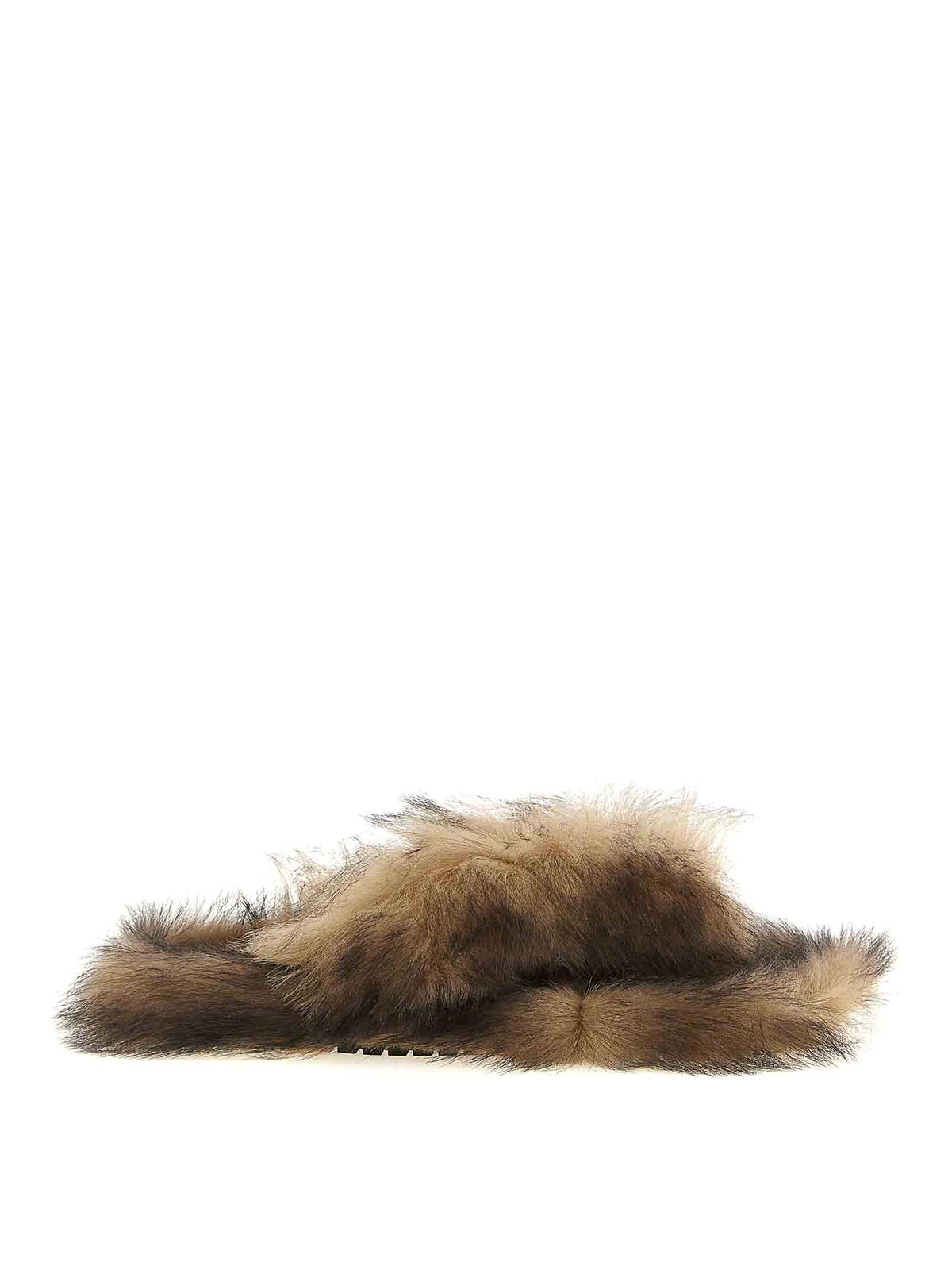 フリップフロップモデル、スエードインソール、ラバーソールのロングヘアシープスキンサンダル。