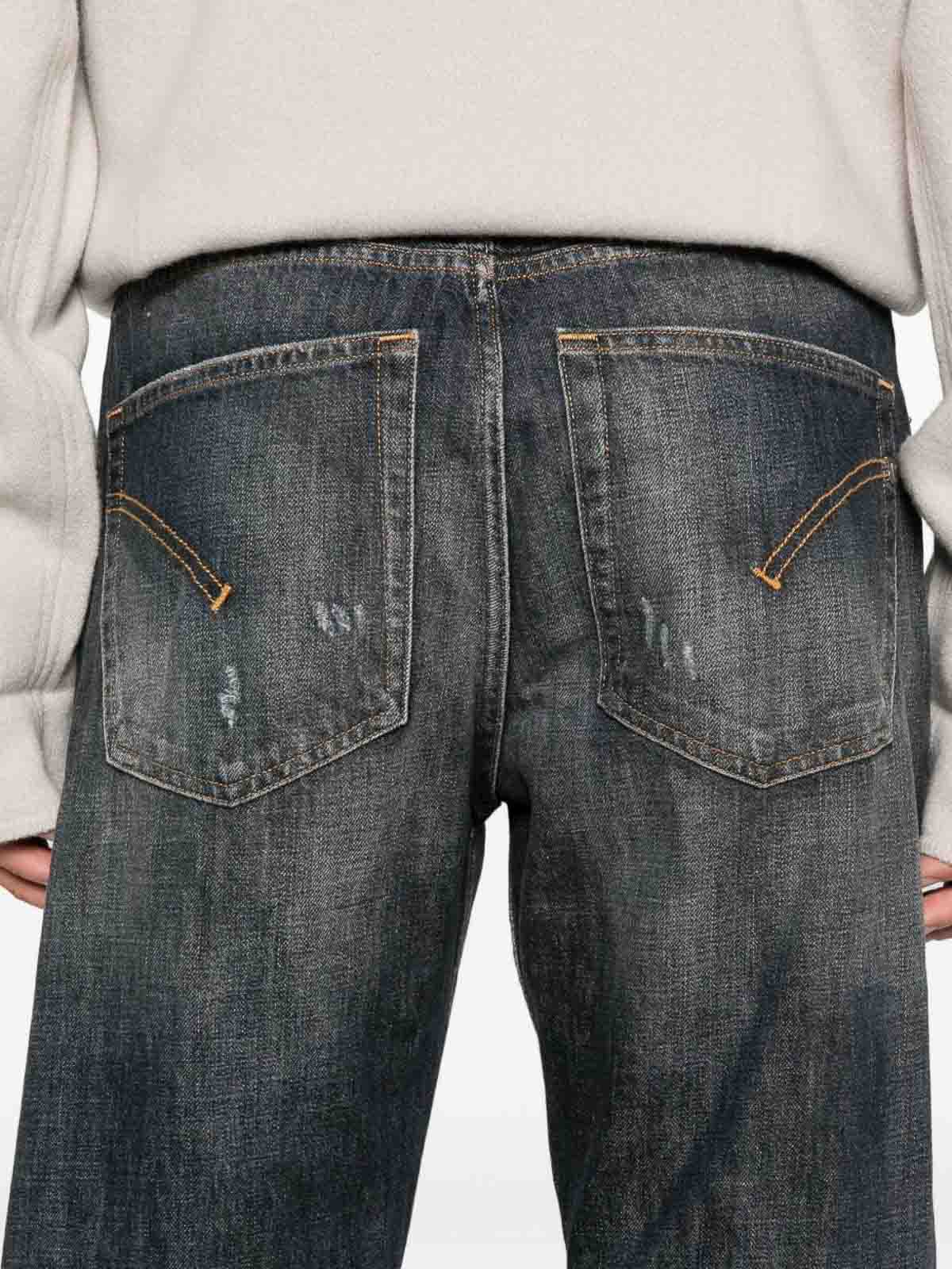 ダークブルーディストレストディテールクラシックファイブポケットボタンフライ