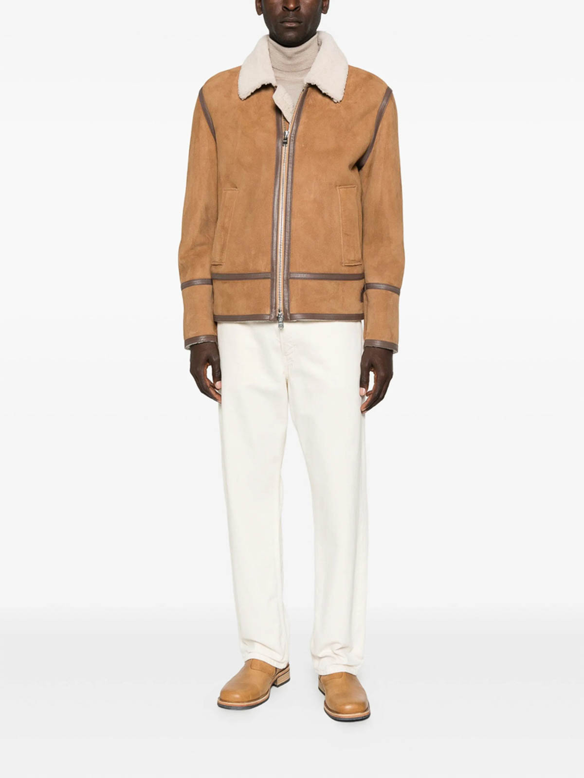 キャメルブラウンのジップカラーロングスリーブ