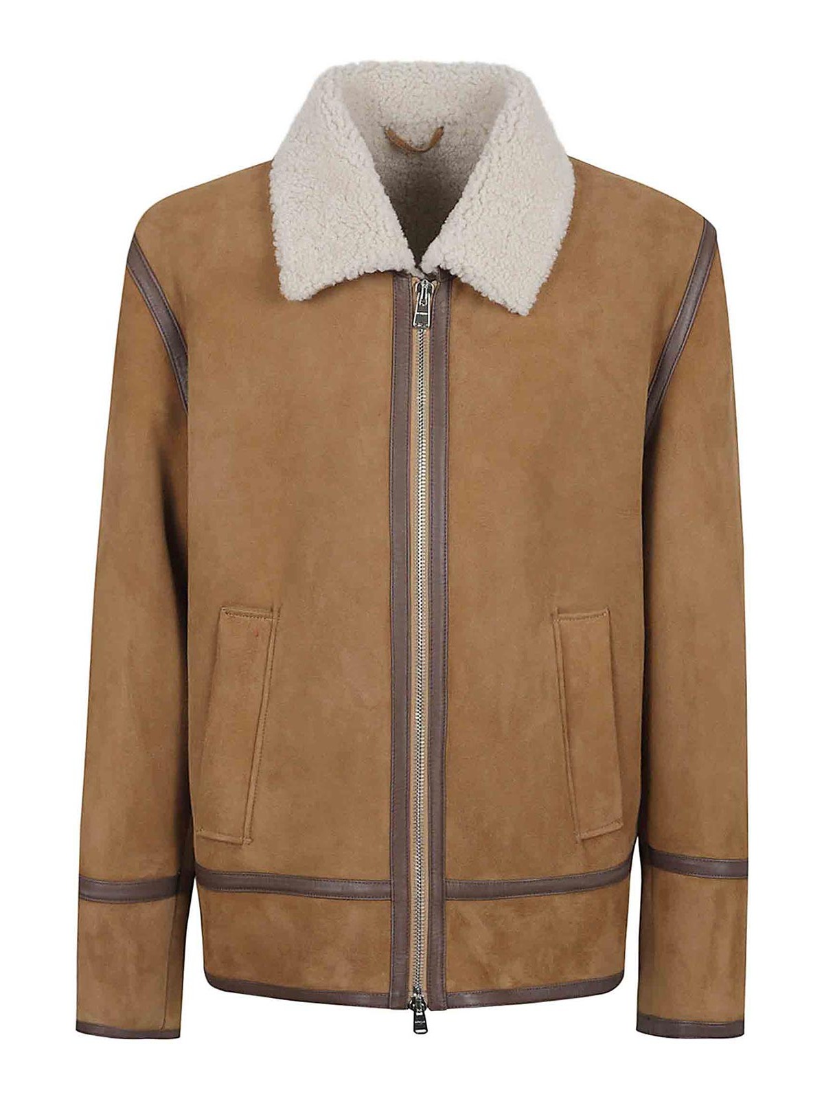 Dondup シアリングジャケット、シャツカラー、ダブルスライダージッパー、大きな斜めウェルト付きポケット2つ、レギュラーフィット。Dondupのロゴとコントラストの効いたトリムが特徴です。