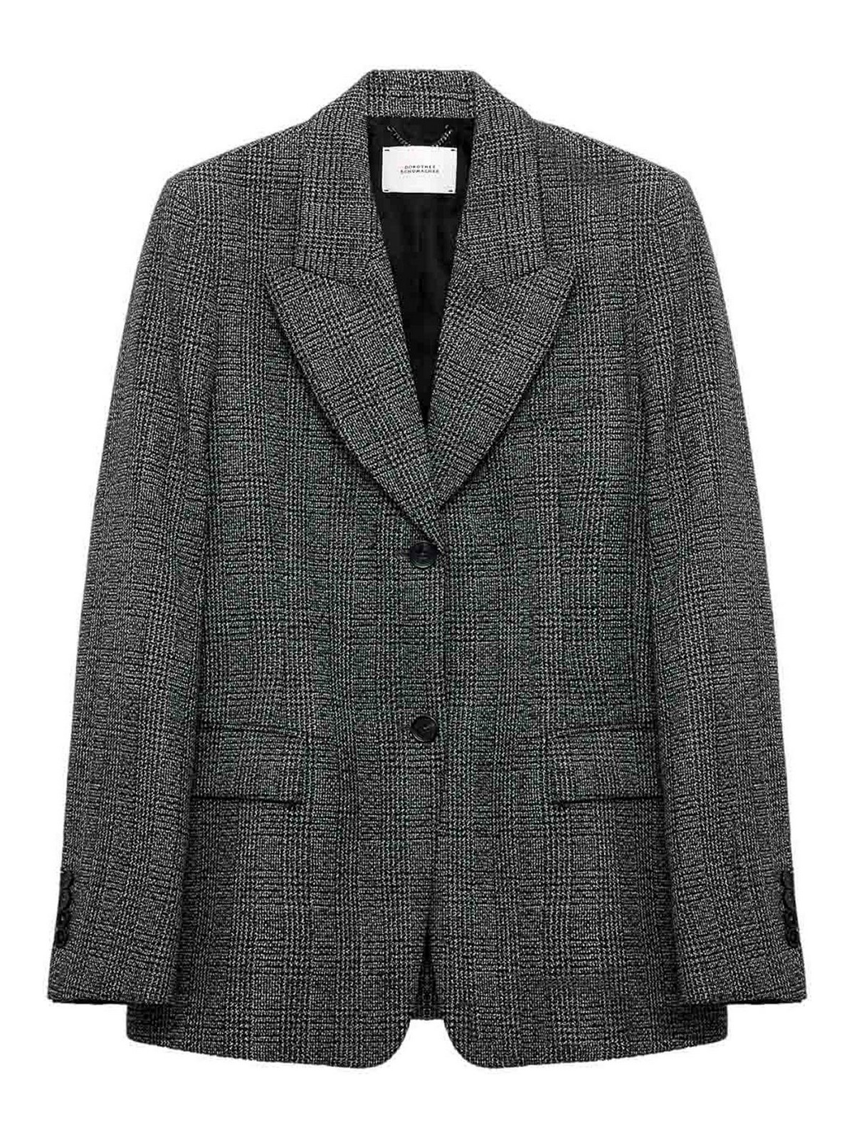 デザイナーカラー:ソルト&ペッパーグレンチェック、ウール、グレンチェック柄、スリムテーラードフィット、ピークドラペル、フロントボタン留め、胸ポケット、サイドポケット2つ、ロングスリーブ、ストレートヘム。