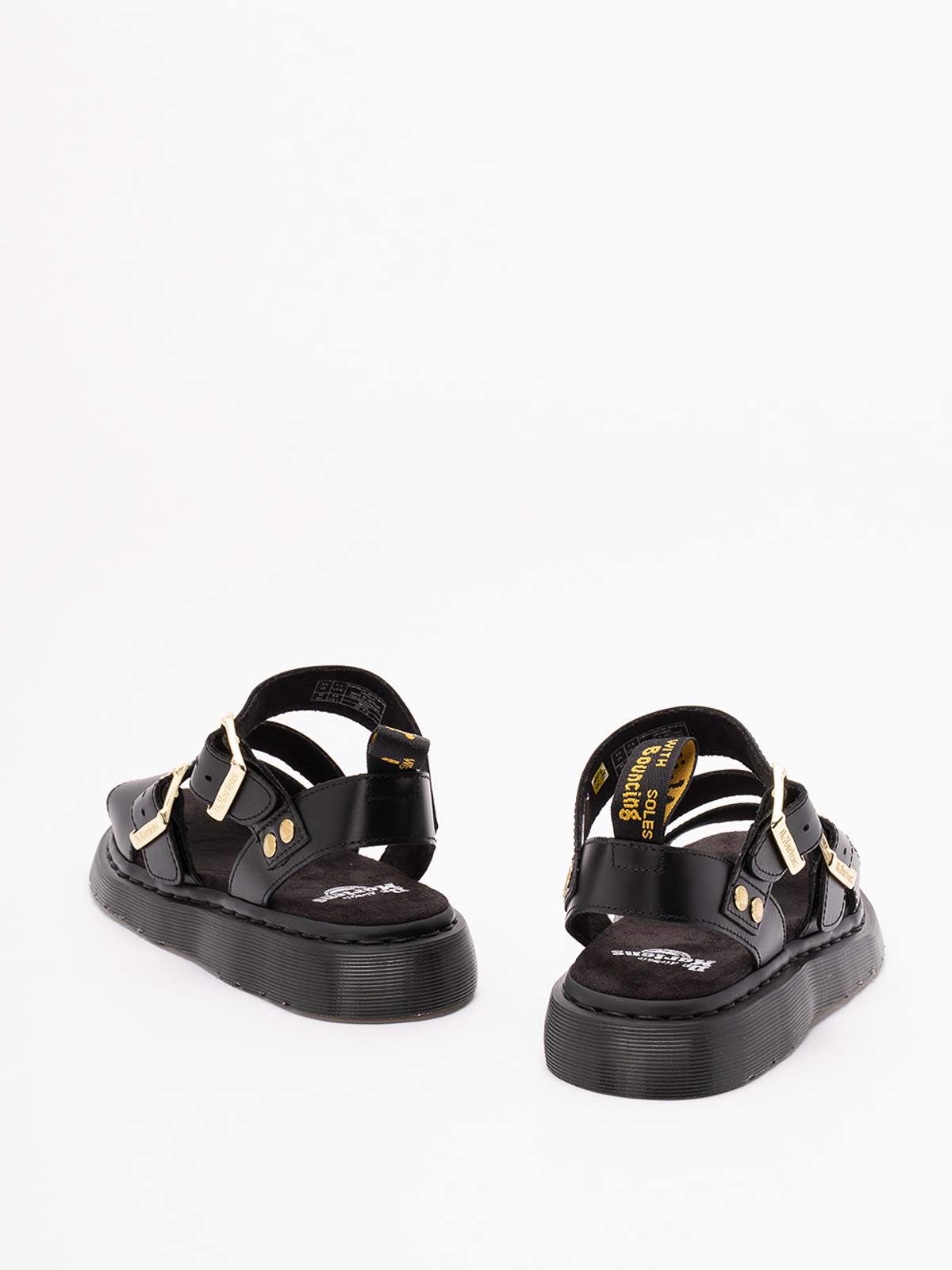 カスタムフィット用の調節可能なバックル付きスムースレザーマルチストラップサンダル。丈夫な構造は、露出したステッチとトレッドの付いた厚みのあるソールで仕上げられており、日常の使用でも安定性と快適さを提供するように設計されています。