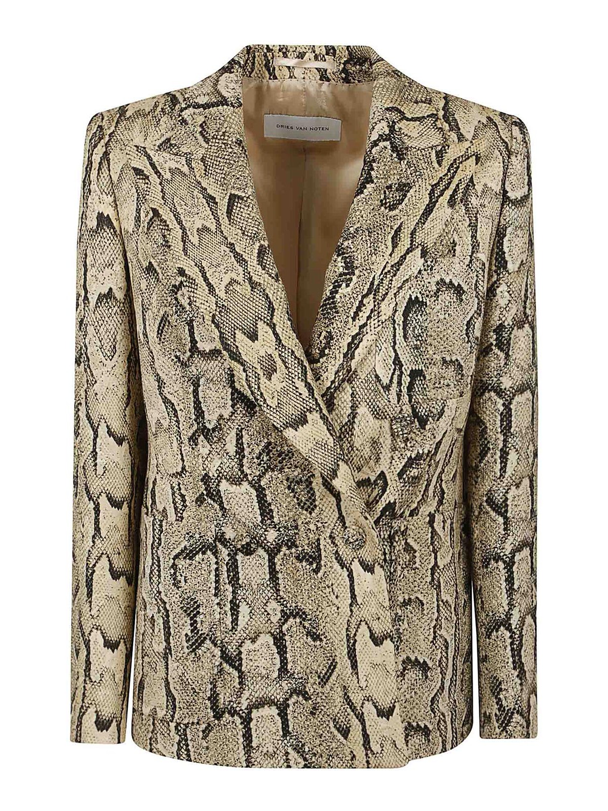Dries van Notenのビスコースとコットンのジャカードジャケット。スネークスキンプリントをあしらいました。ダブルブレストデザイン。