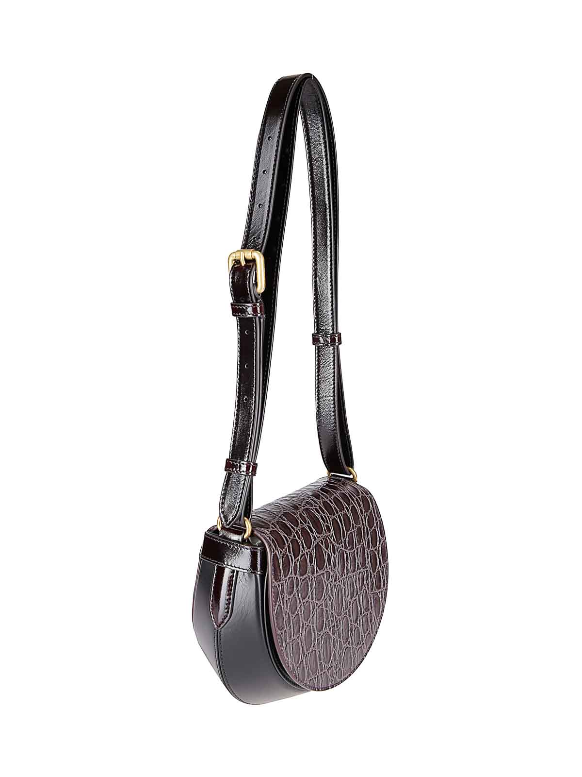 調節可能なショルダーストラップ、フロントフラップ、マグネットクロージャー、内部ポケット付きのレザーバッグ。