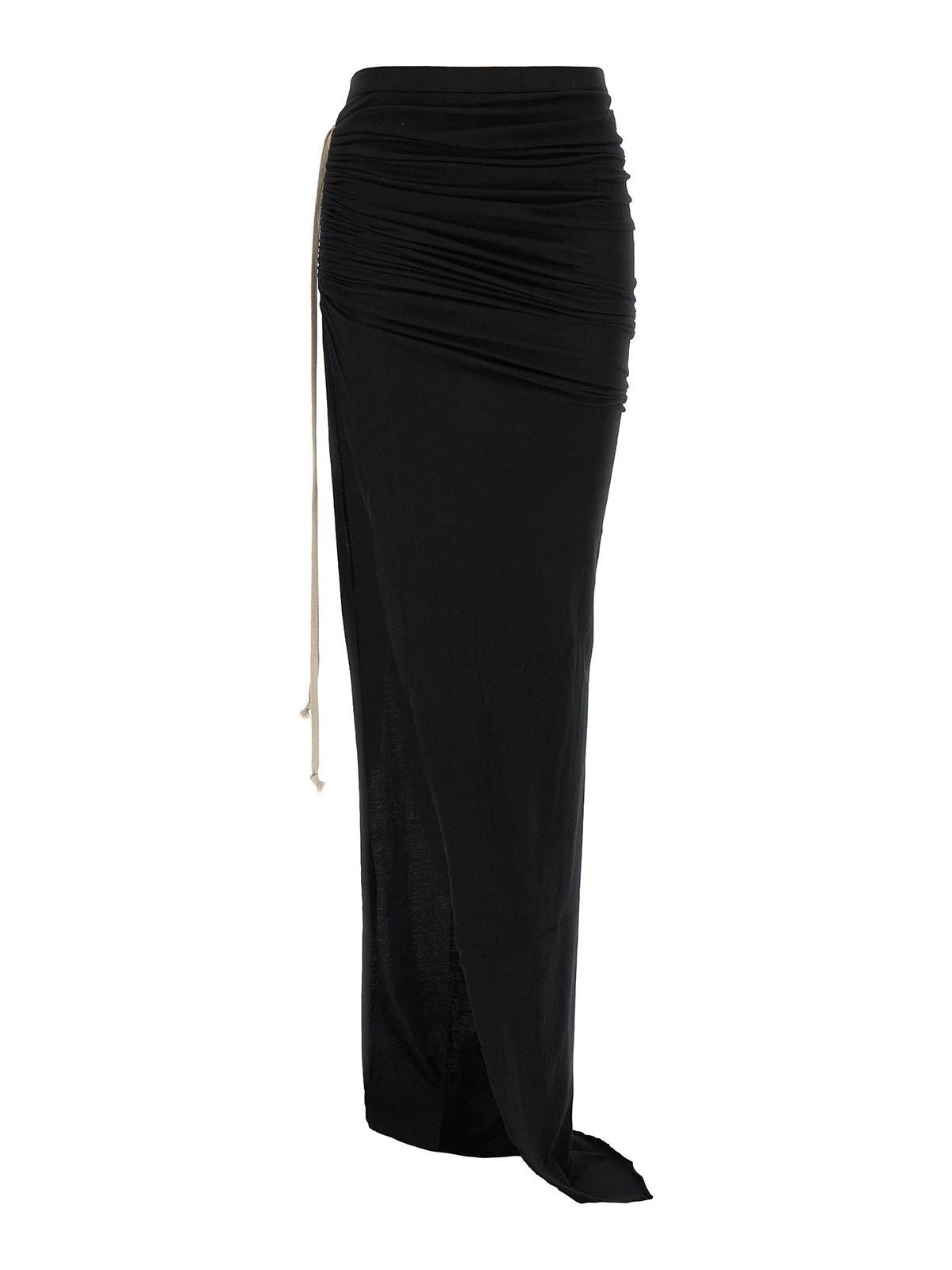 ガーメントダイで染めた半透明のコットンガーゼジャージーを使用したソフトなedfu'マキシスカート、伸縮性のあるウエストバンド、カールを調整できるドローストリング付きのサイドスプリット付き。