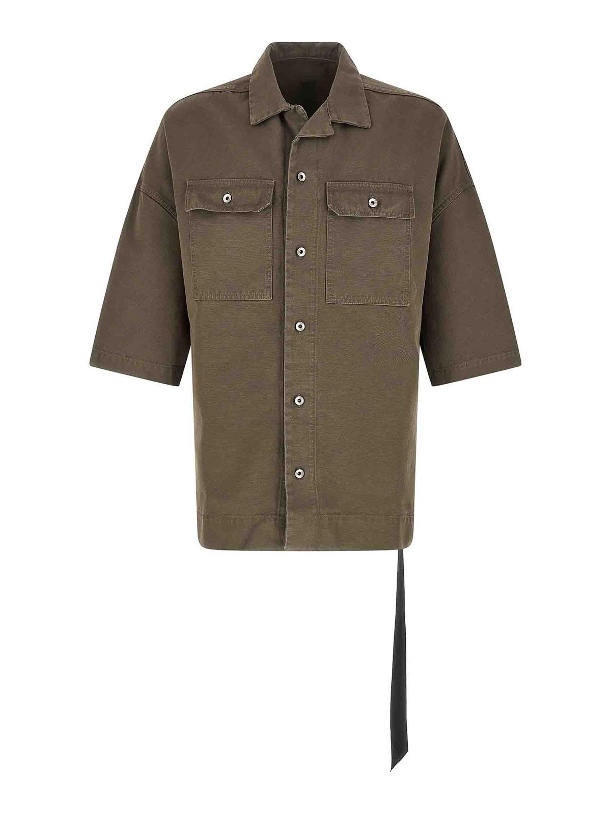 Magnum Tommy'のコットンキャンバスシャツ、フロントボタン留め、ポケット、ドロップショルダー、サイドスリット付き半袖。