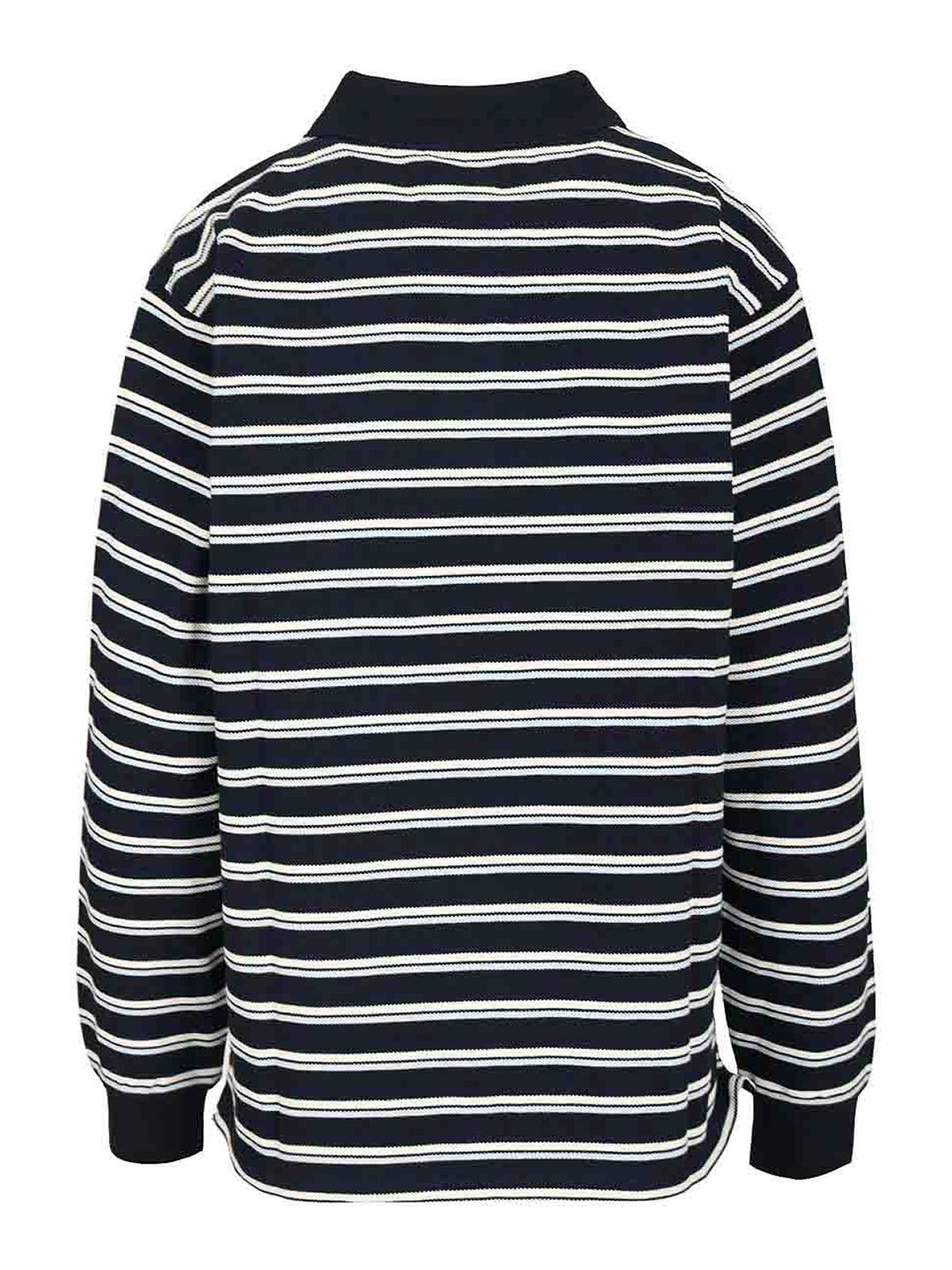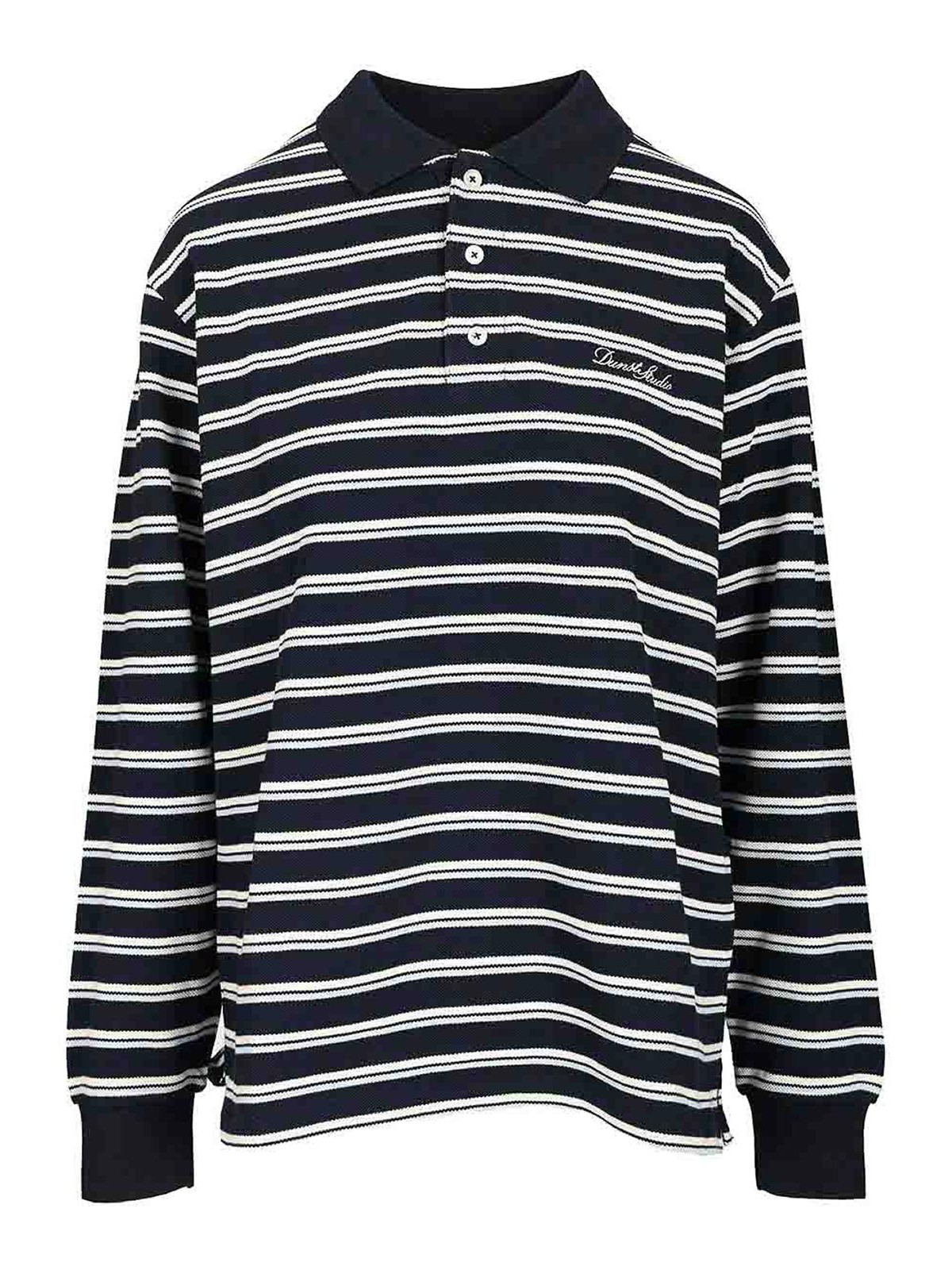 Dunst ストライプコットンポロシャツ、長袖、胸にロゴ刺繍、襟と袖口はリブ編み