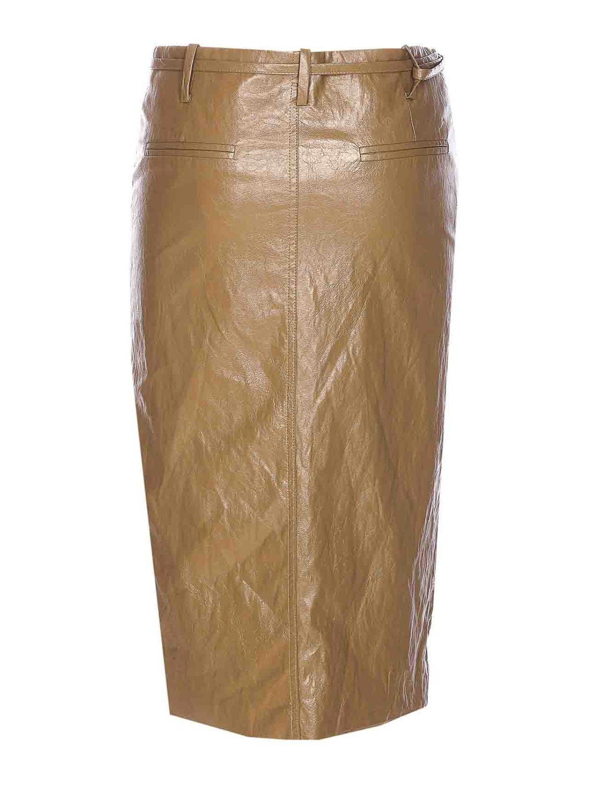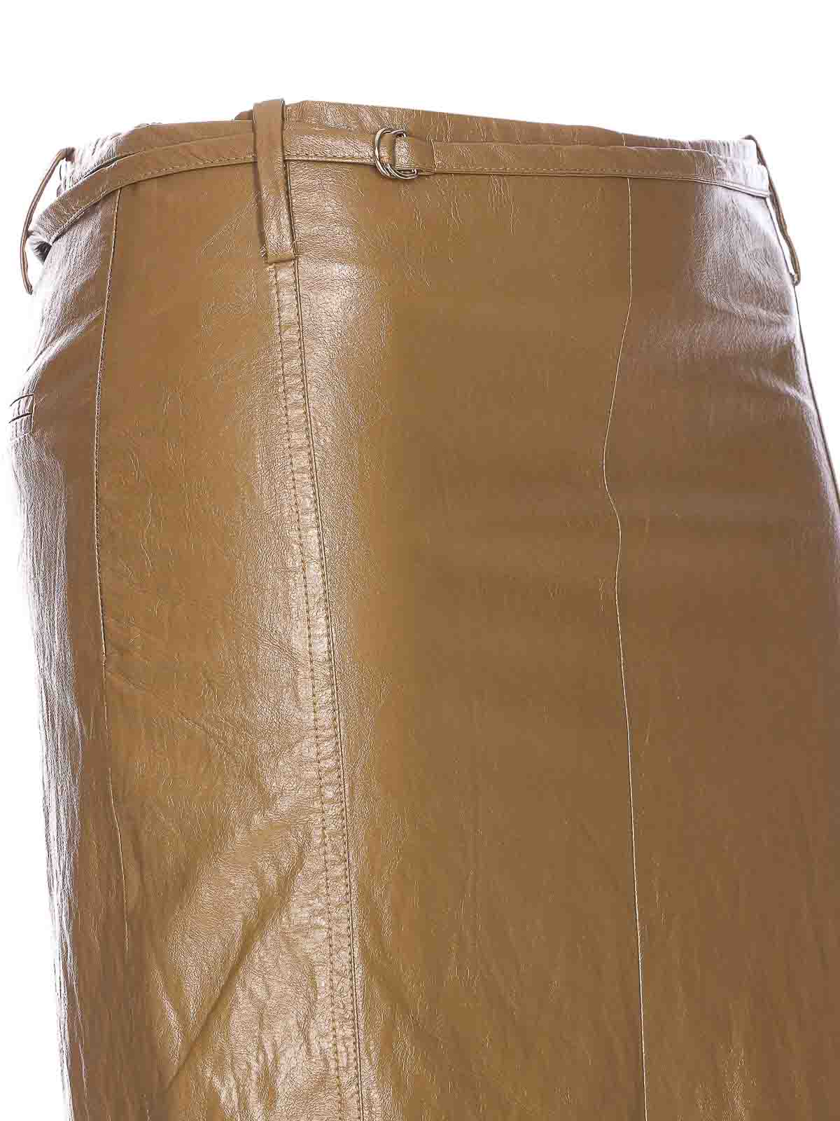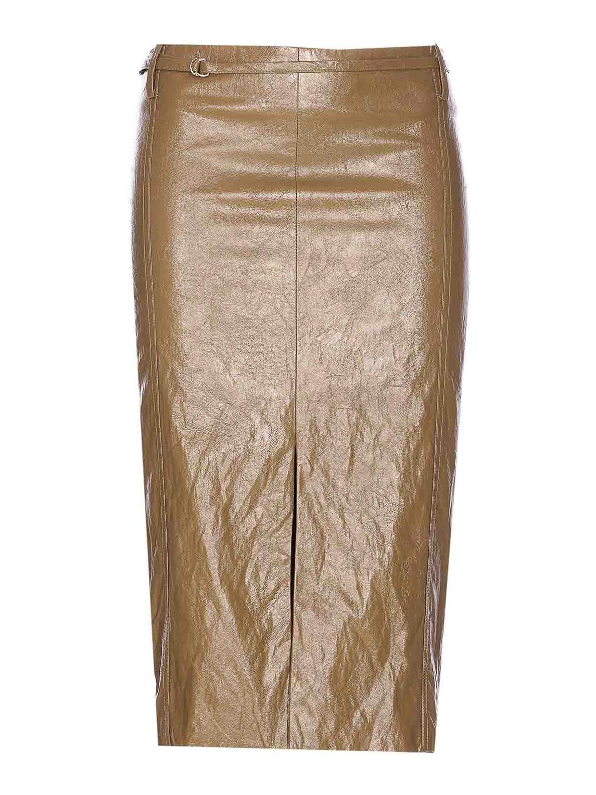 グリーンスカートラテラルジップベルトウエストスプリットミディモデルデザイナーカラー名:グリーン