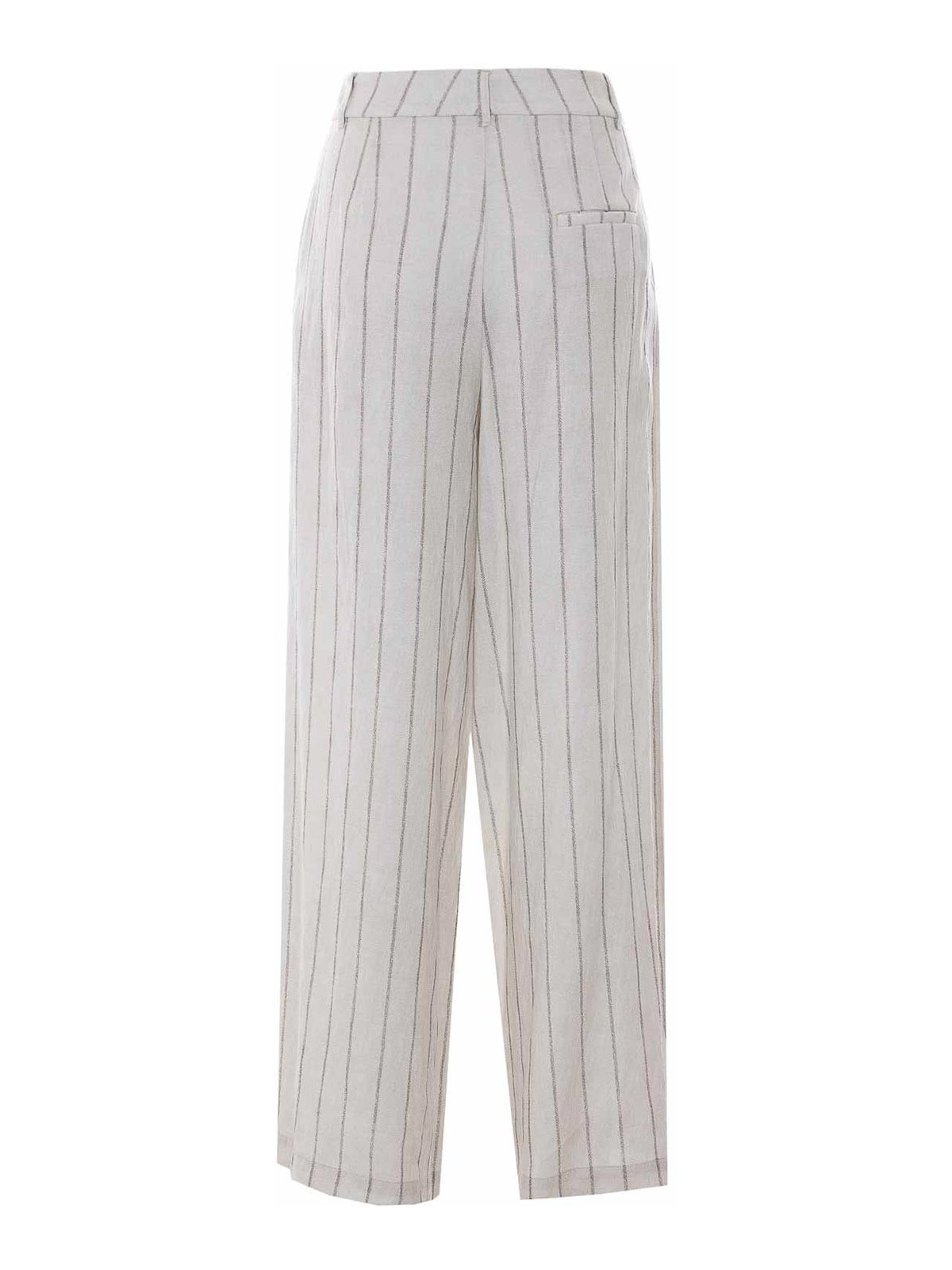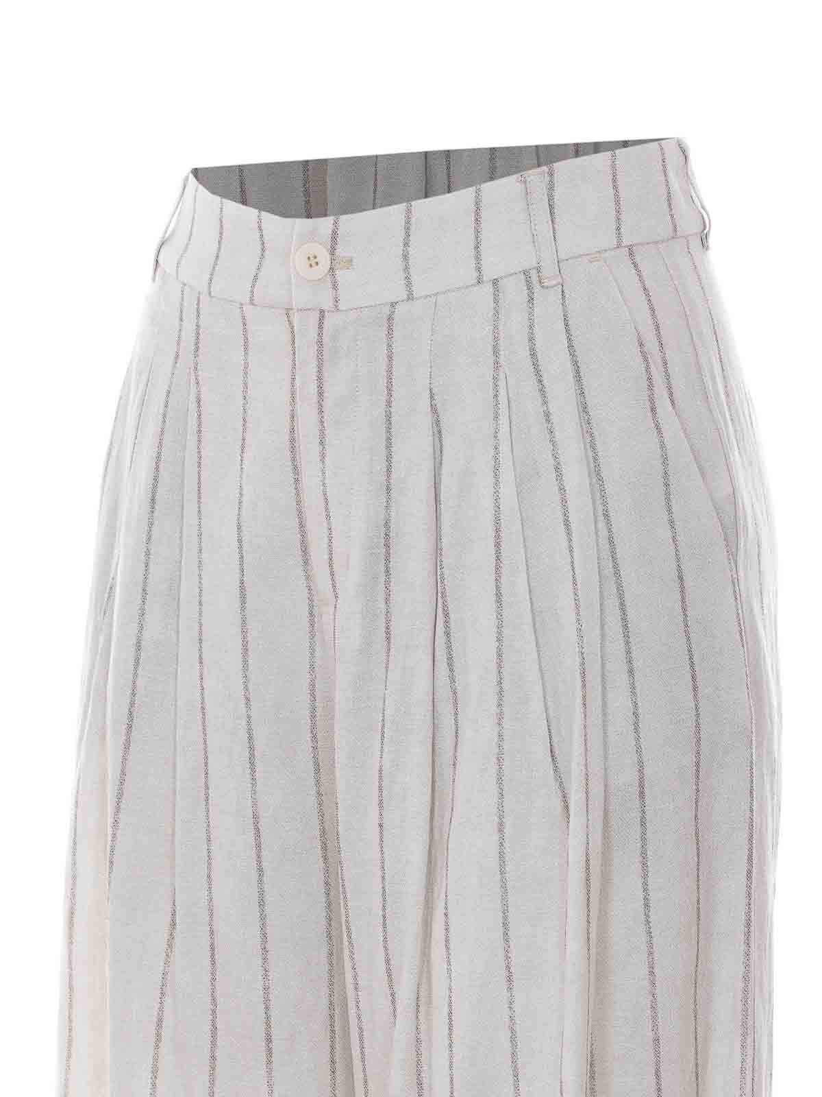 Eleh エクリュパンツ、ファスナーとボタン留め、ストライプ、ワイドレッグ