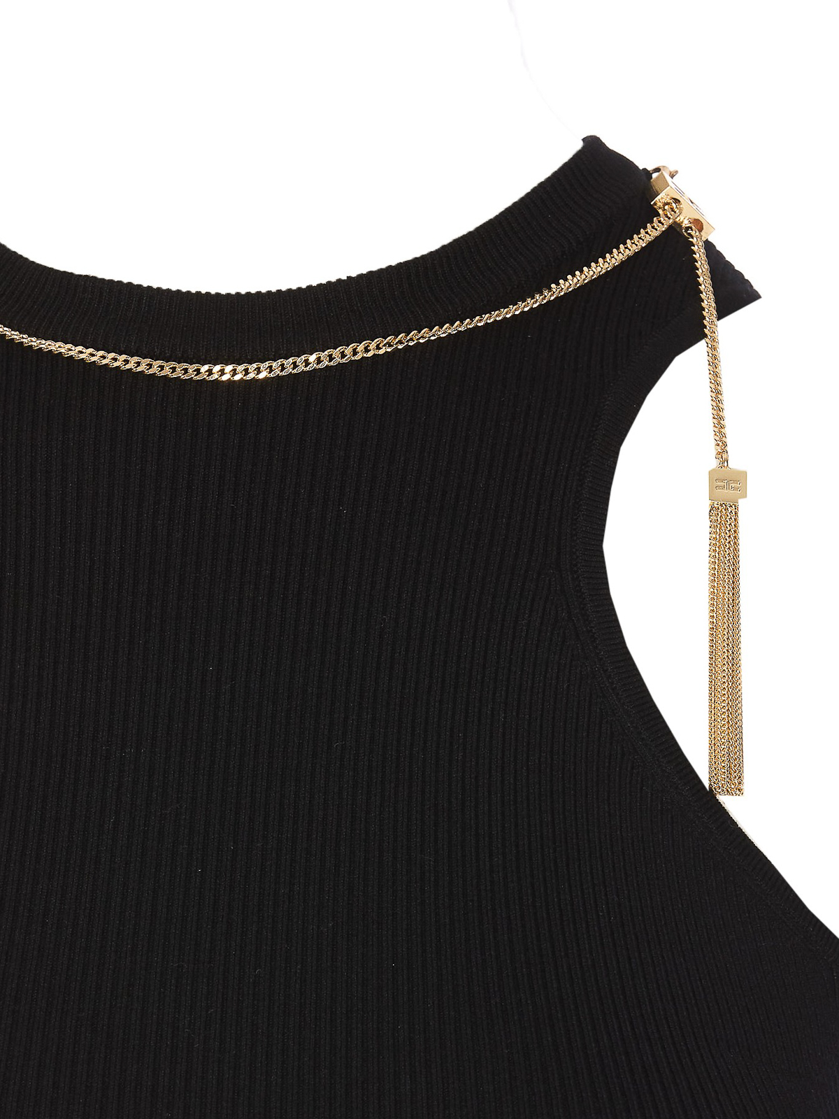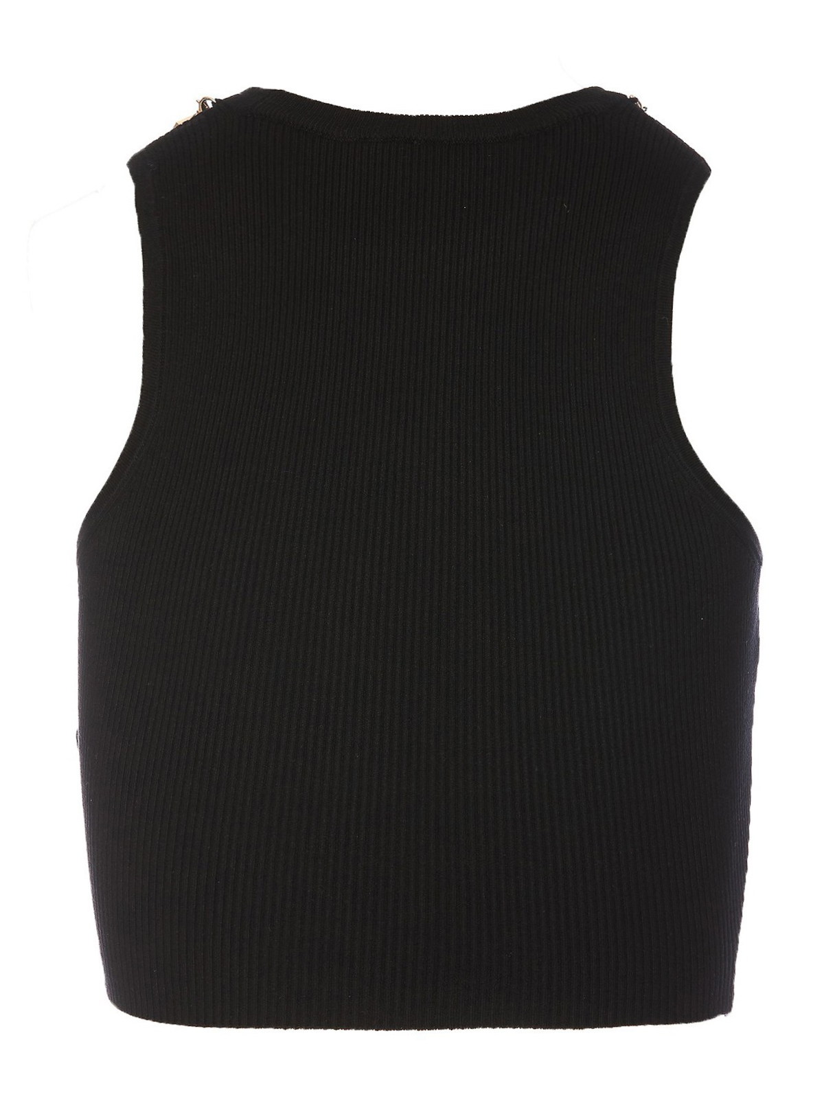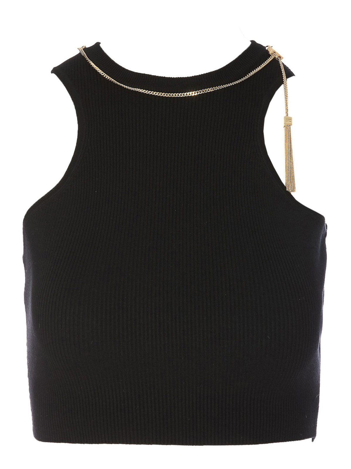 Elisabetta Franchi ブラックトップ、クルーネック、ノースリーブ、ゴールデンチェーンディテール