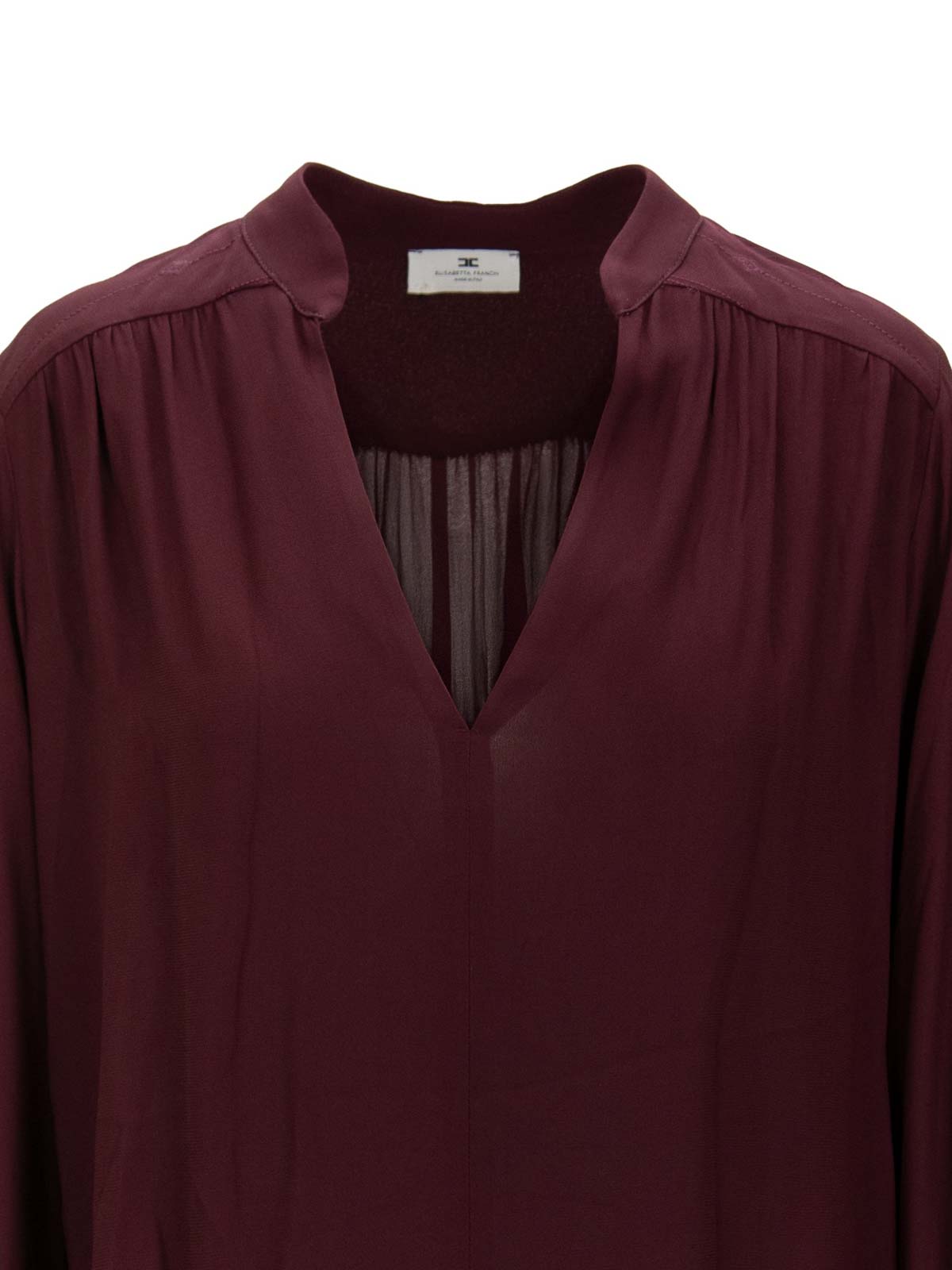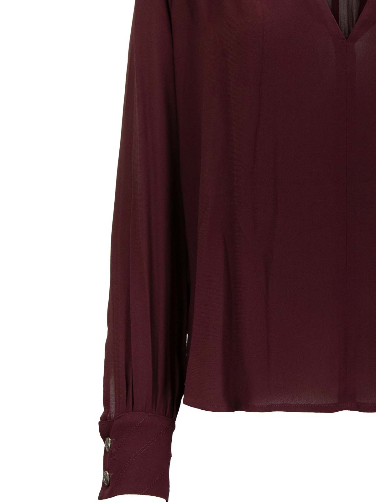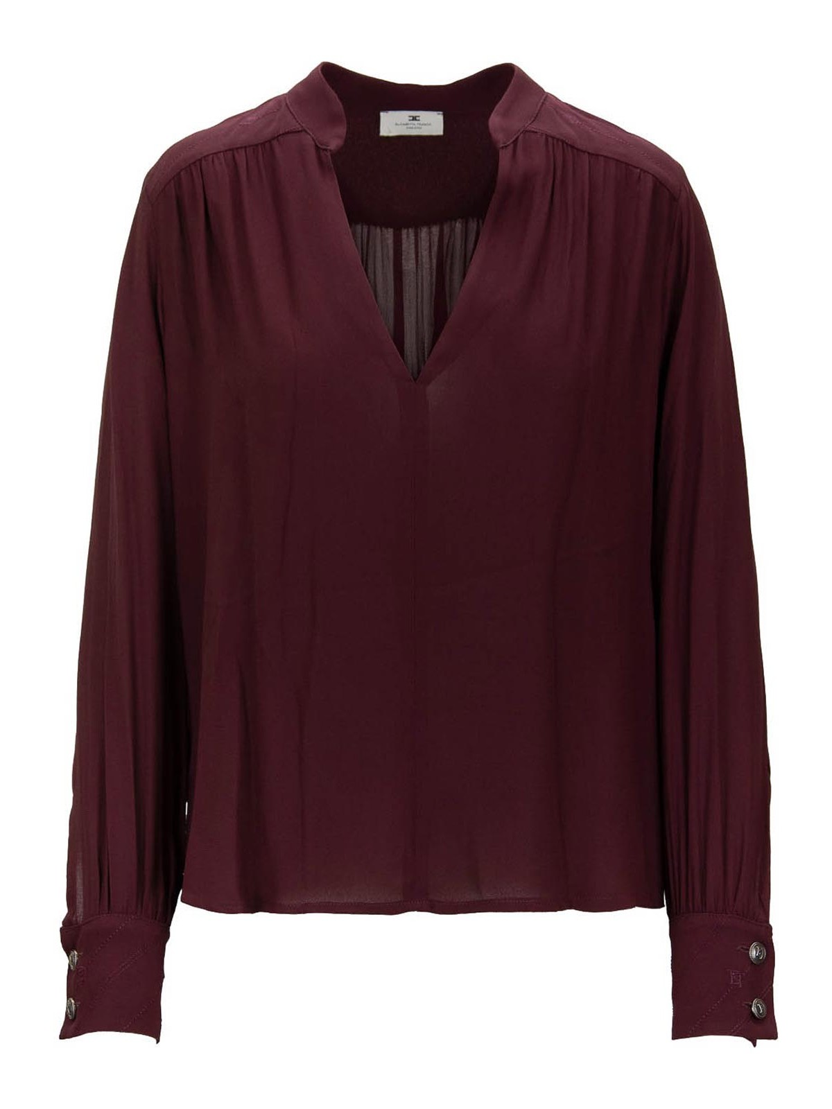 エリザベッタ・フランキのサイン入りレディースシャツ。生地はビスコース100%。長袖のVネックラインが特徴のブラウス。後者はロゴのディテールがレリーフに刺繍され、クロージャーはロゴボタンで留められ、シルバーカラーのメタル製です。肩はレリーフパーツのディテールが特徴です。イタリア製