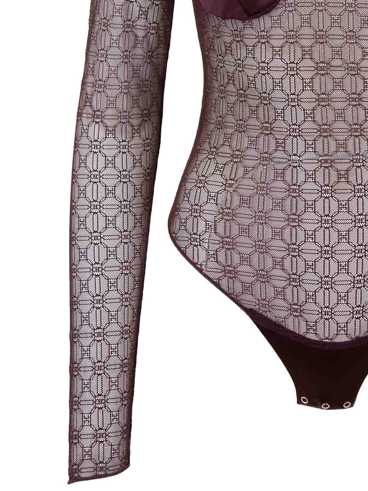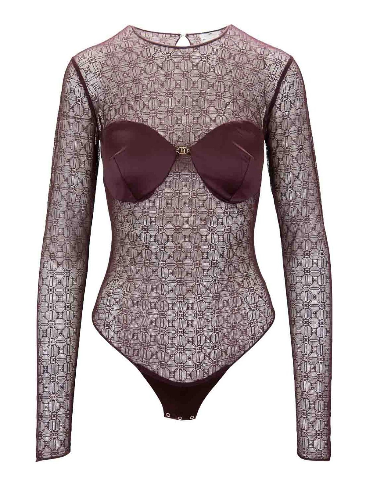 エリザベッタ・フランキの女性用ボディサイン入りメイン生地は 100% ポリアミド製。インサートは 78% がポリアミド、22% がエラスタン製です。ボディクルー、襟付きリアフックで留め具付き、ロングスリーブ。フロントの中央には、ゴールドカラーのメタルでできた細部までこだわったロゴがあしらわれています。半透明の生地で作られています。ブランドロゴのモチーフが特徴の外面。下部の自動ボタンで閉じます。イタリア製。