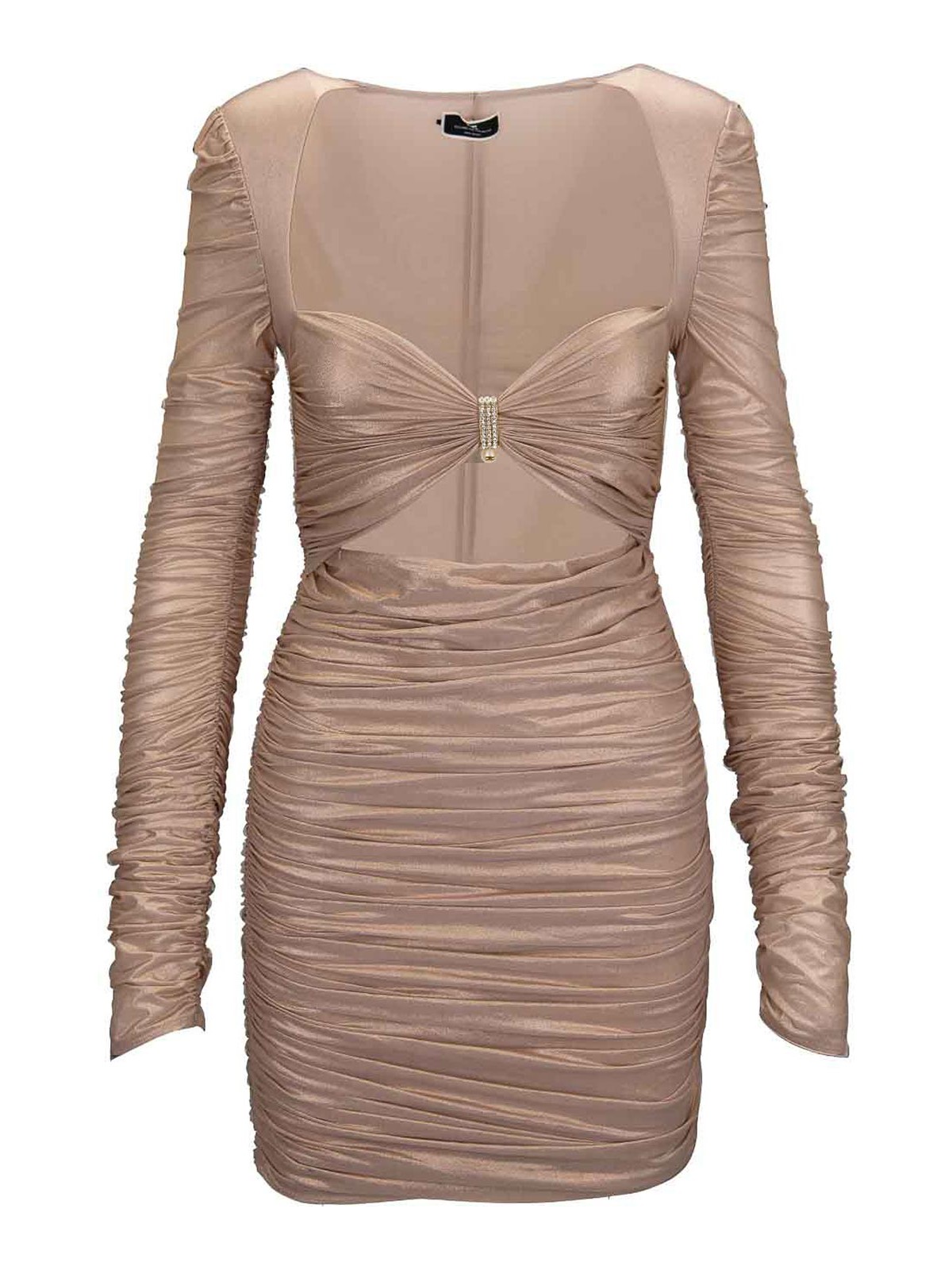 ELISABETTA FRANCHI: ニーレングスドレス - 膝丈ドレス - ヌードカラー
