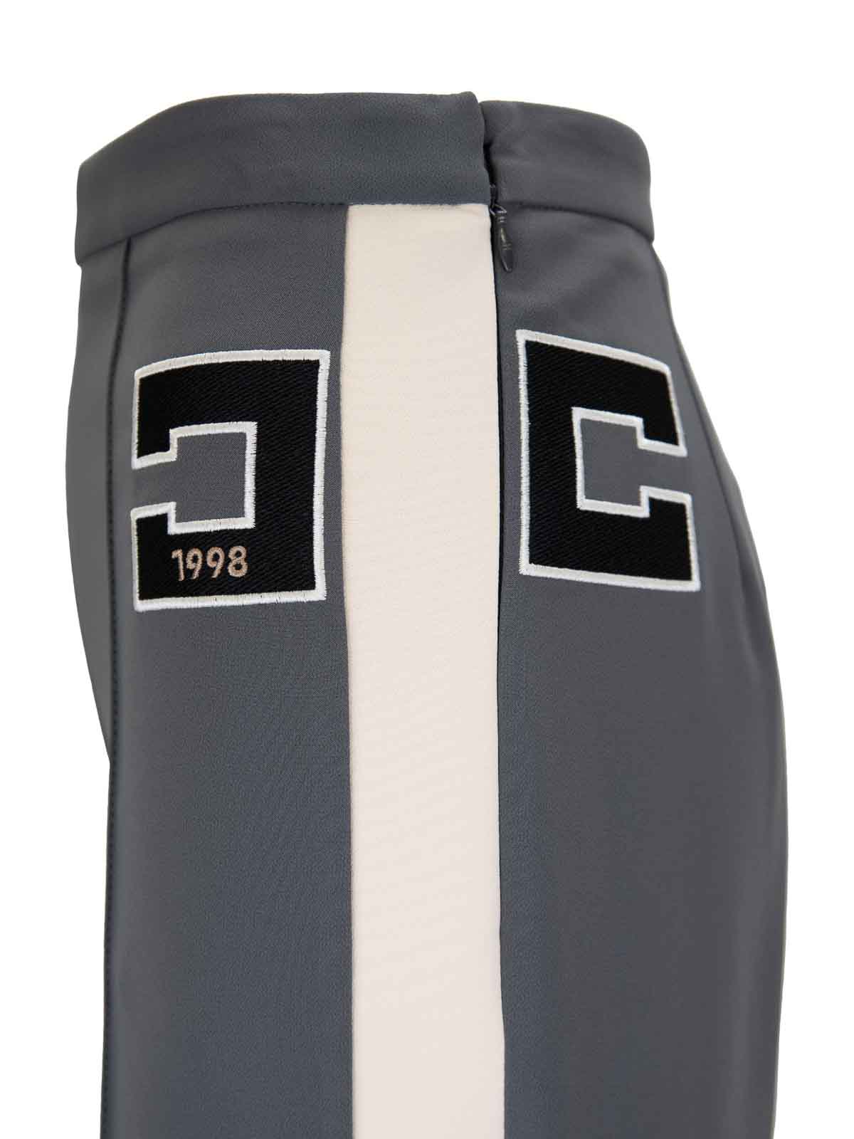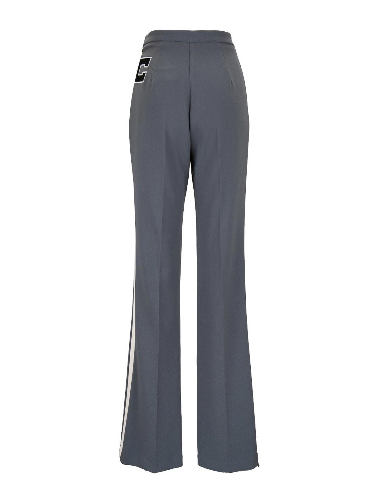 エリザベッタフランキの女性用パンツ。メイン生地はポリエステル 95%、エラスタン 5% 製です。ストレートパンツ、底に少しフレア加工が施されています。コントラストカラーのバンドとサイドのロゴ刺繍が特徴。サイドには見えないジッパーとフックで閉じます。イタリア製