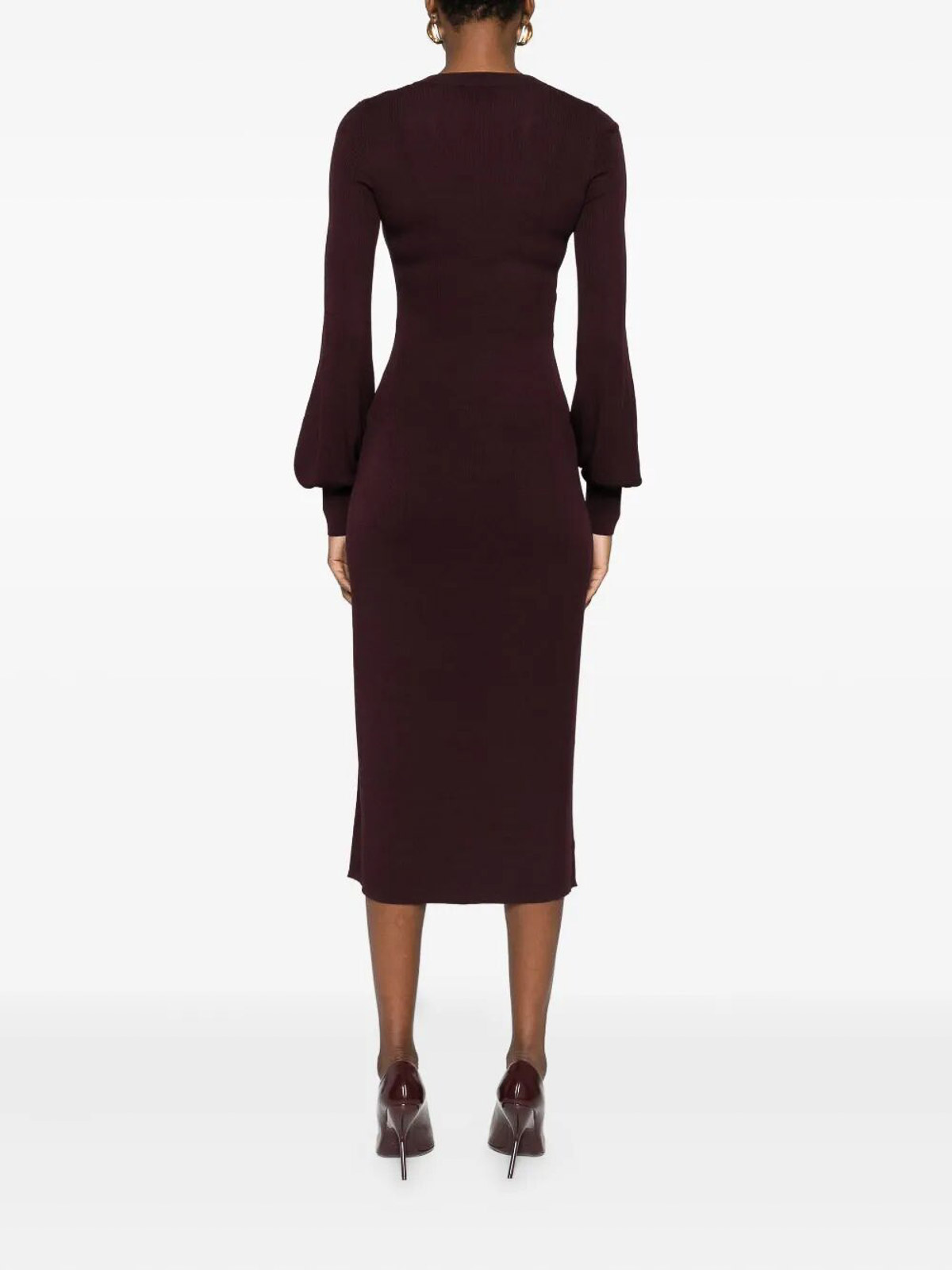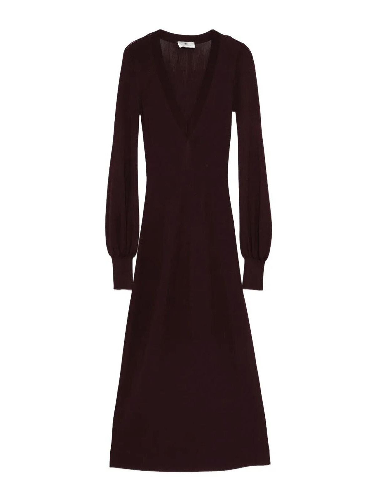ダークレッド、Vネック、バルーンスリーブ、ロングスリーブ