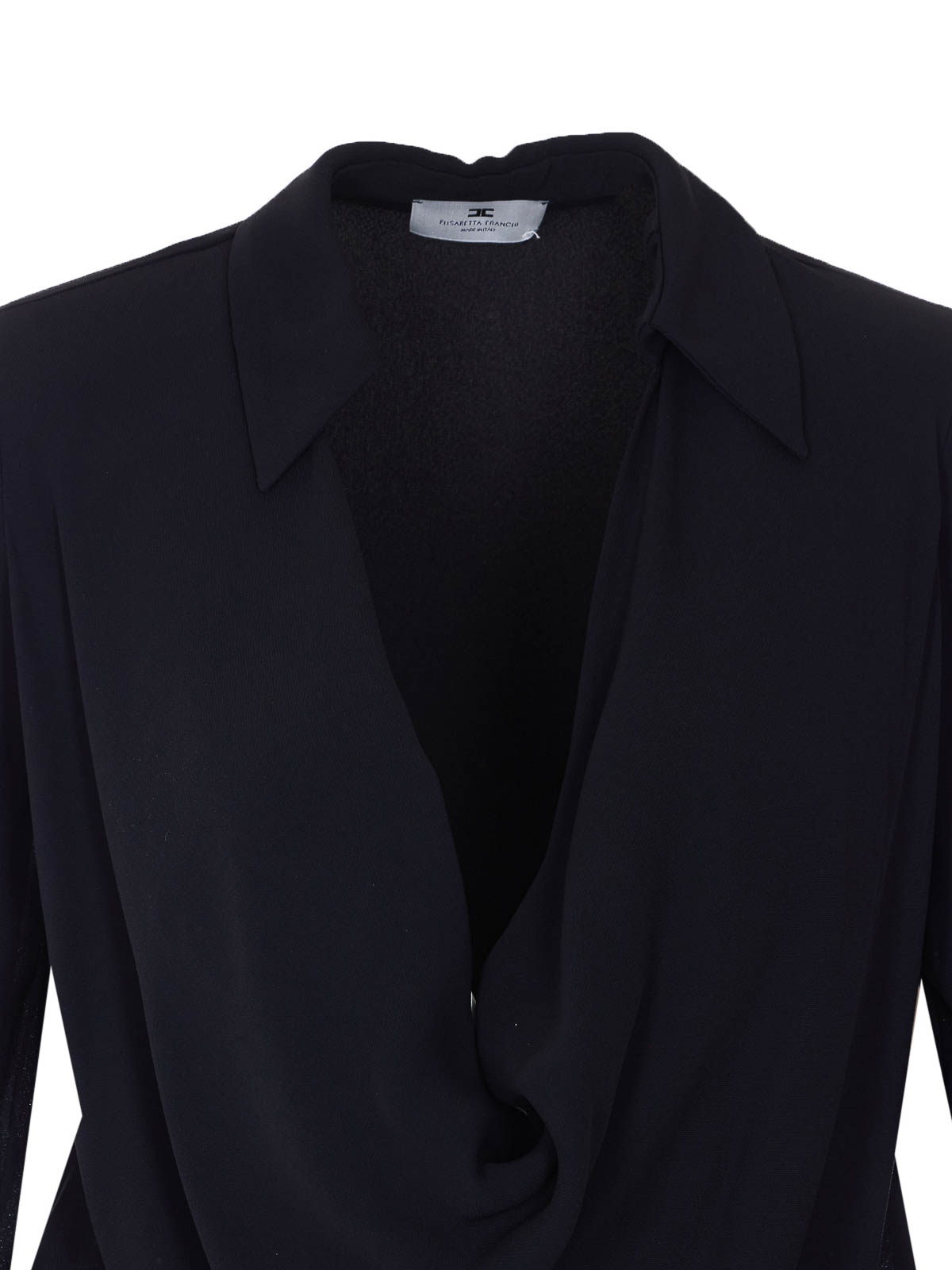 Elisabetta Franchi ブラックシャツ、ボタン留め、長袖、レギュラーカラー、補強ショルダー、透明効果
