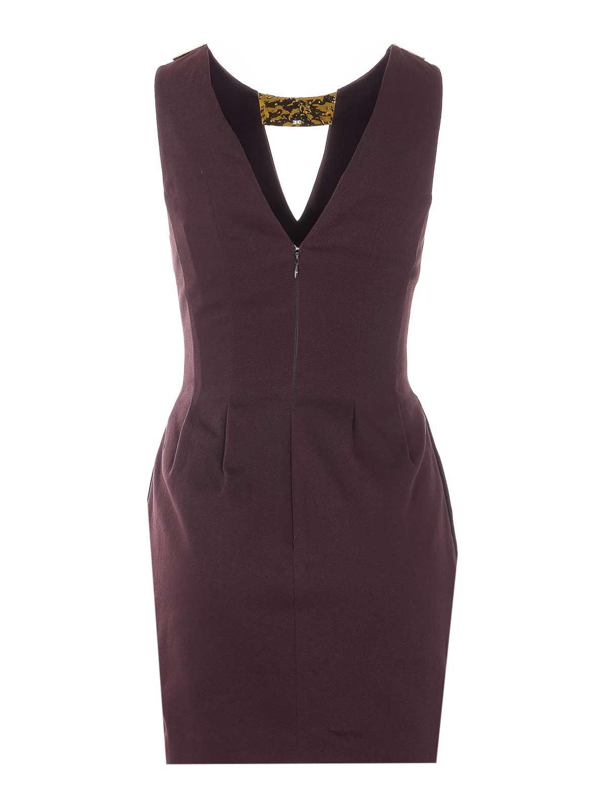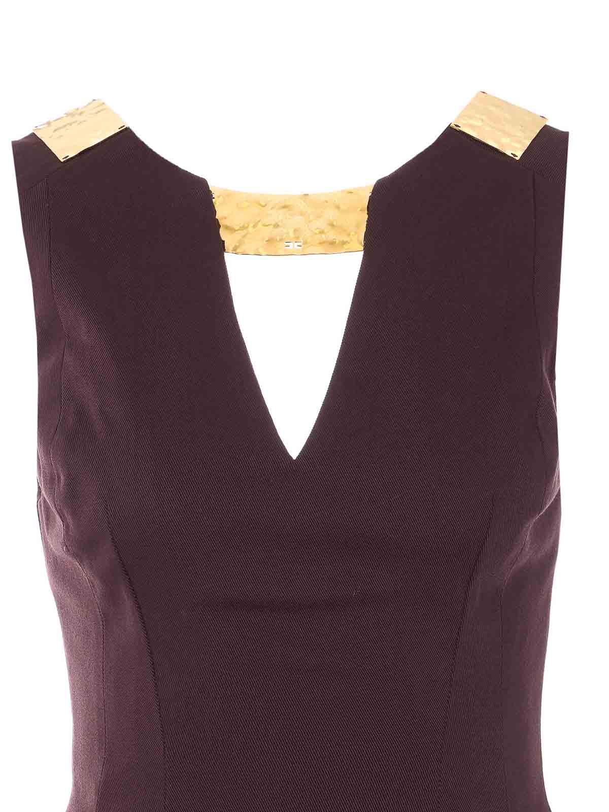 Elisabetta Franchi ボルドードレス、Vネック、ノースリーブ、プラークディテール、ラテラルポケット、ミニモデル