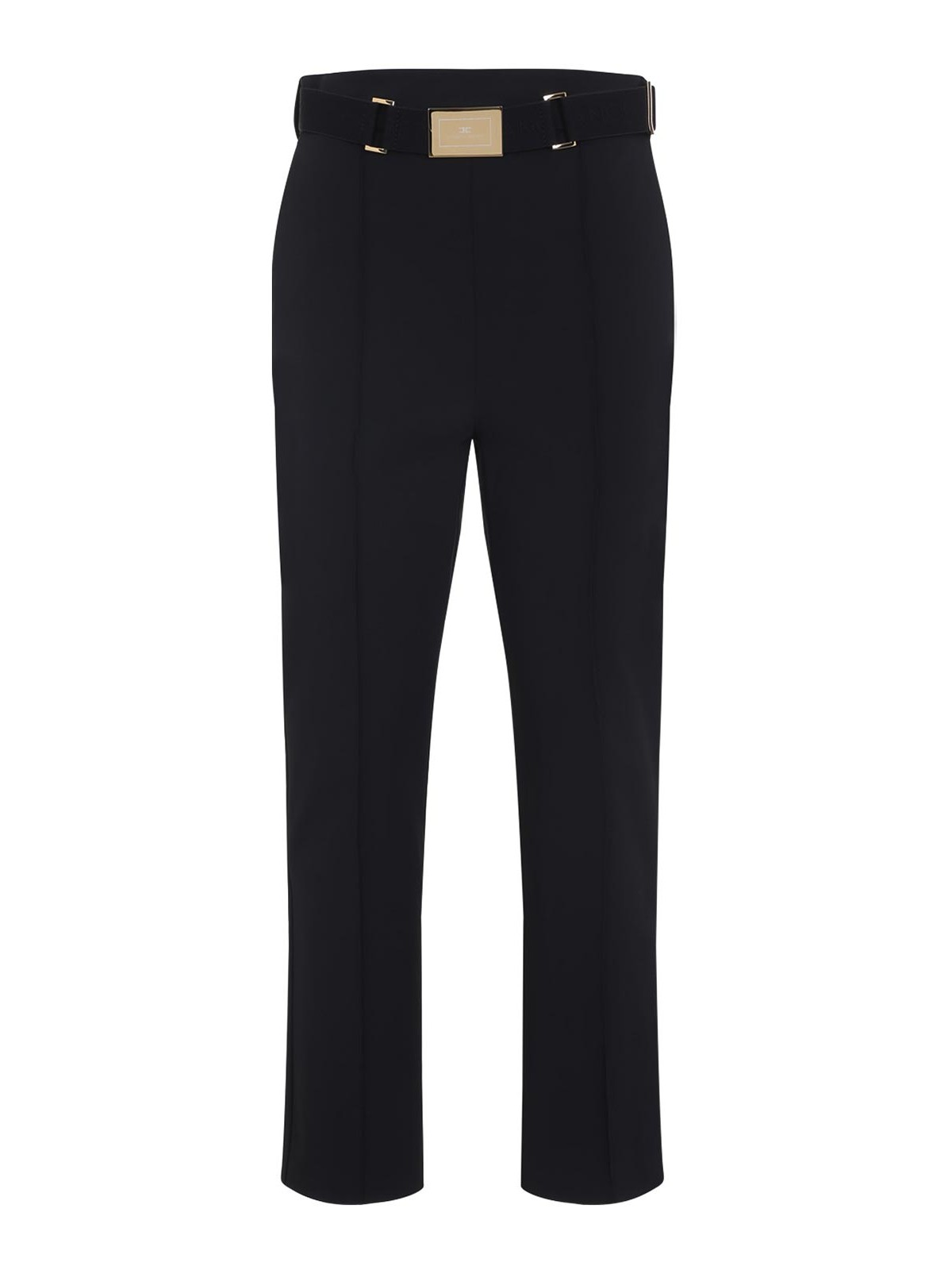 Elisabetta franchi vela ブラックポリアミドパンツ。ブラックテックファブリック製のハイウエストパンツ。ブランドロゴ入りのゴールドトーンの飾り板が付いた取り外し可能なベルト、サイドポケット、中央にステッチを施した折り目、ストレートレッグ、スリムフィットが特徴です。