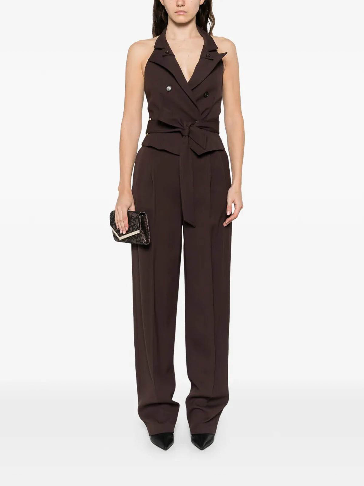 ELISABETTA FRANCHI: カジュアルトラウザー - カジュアルパンツ - ブラウン