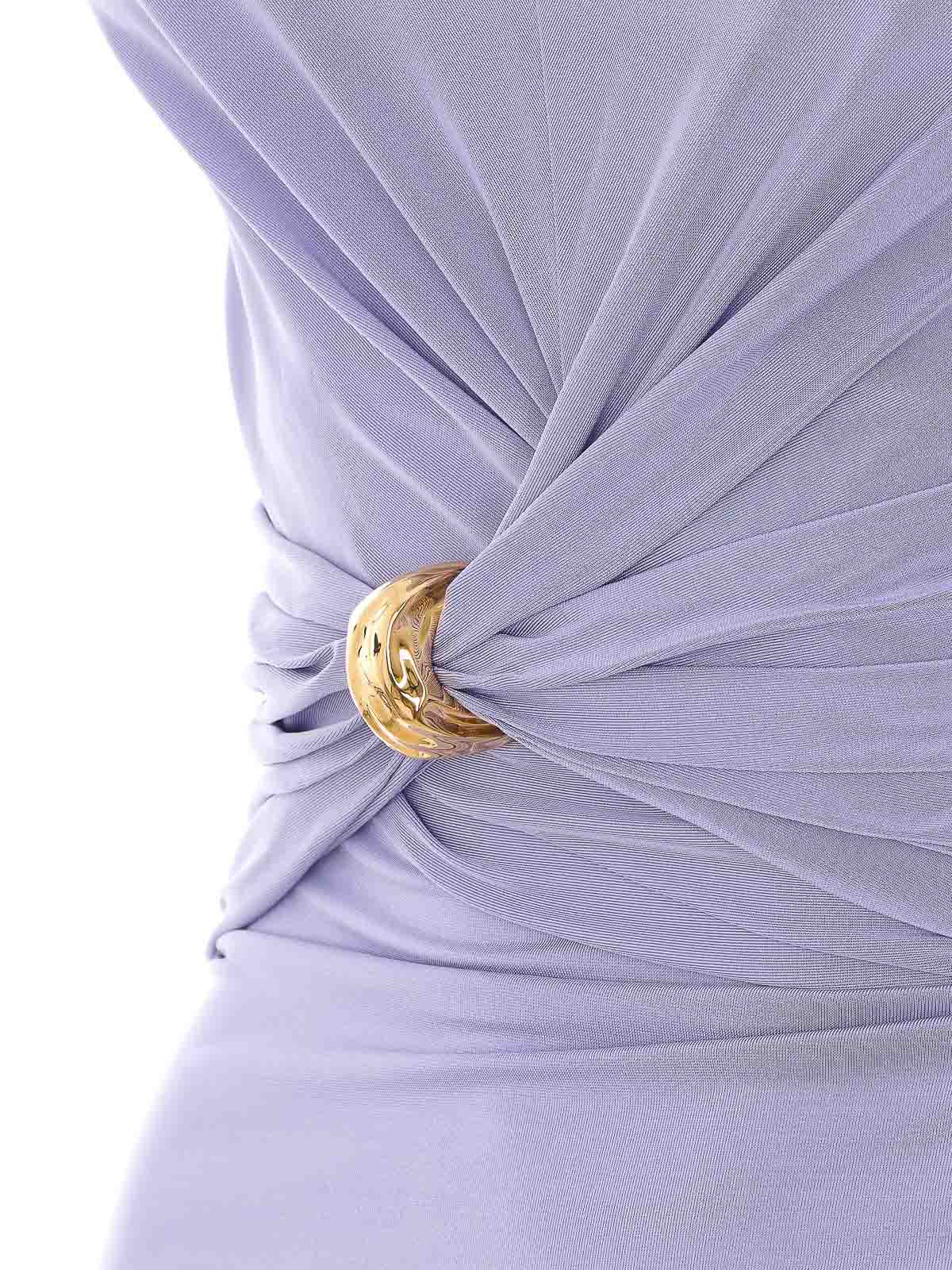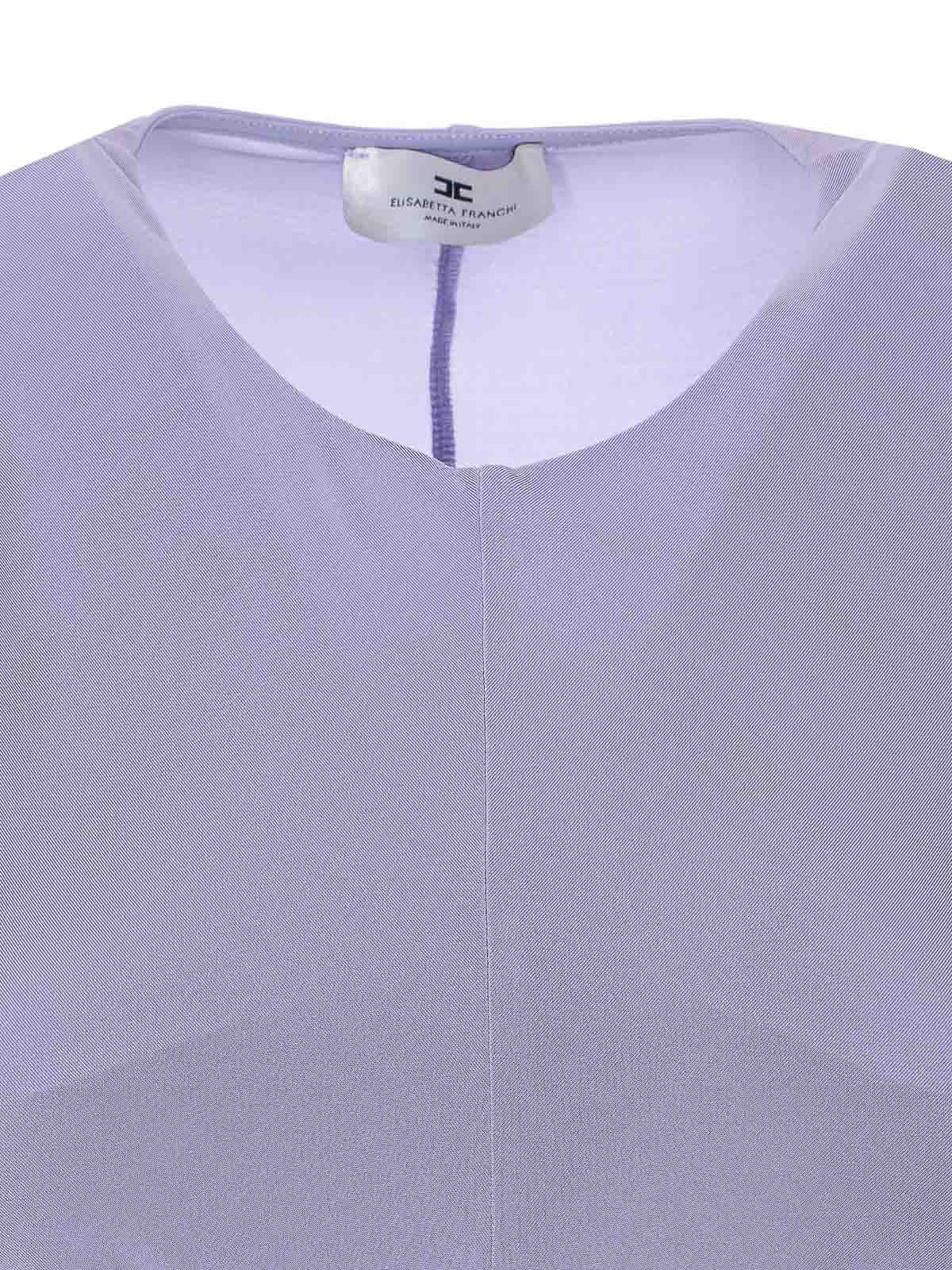 Elisabetta Franchi ライラックトップ、横ファスナー開閉、袖なし、前面に結び目のディテール、伸縮性のあるタイトフィット