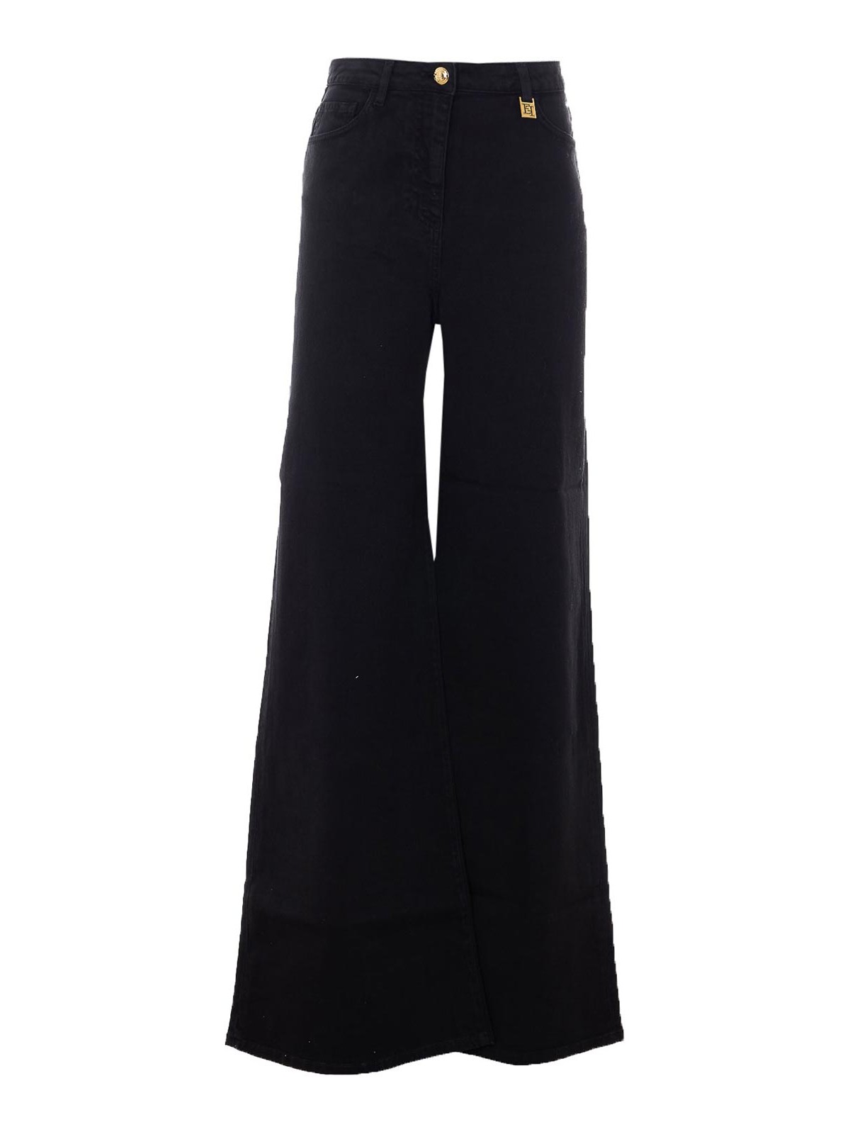Elisabetta Franchi ブラックジーンズ、ハイウエスト、ボタンとジッパー、ポケット5つ、ワイドレッグ