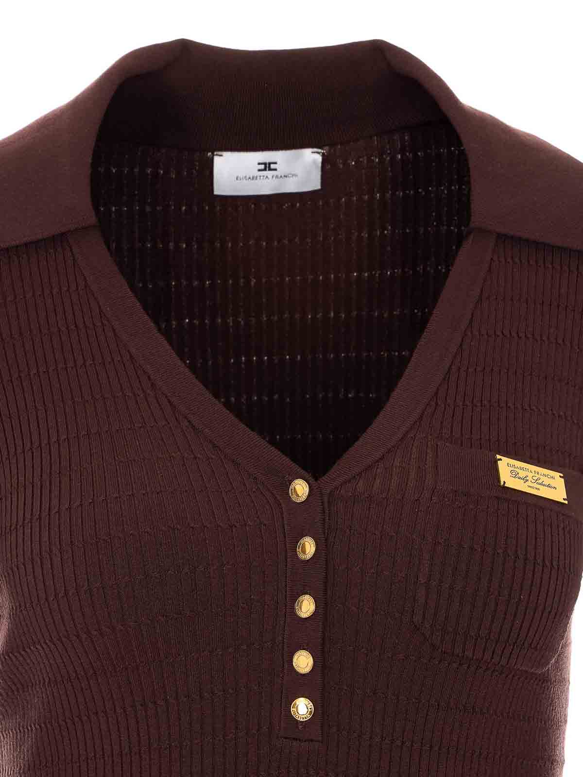 Elisabetta Franchi ブラウントップ、Vネック、襟、前面にボタンディテール、プラークロゴ入りポケット、ショートスリーブ、ショートスリーブ