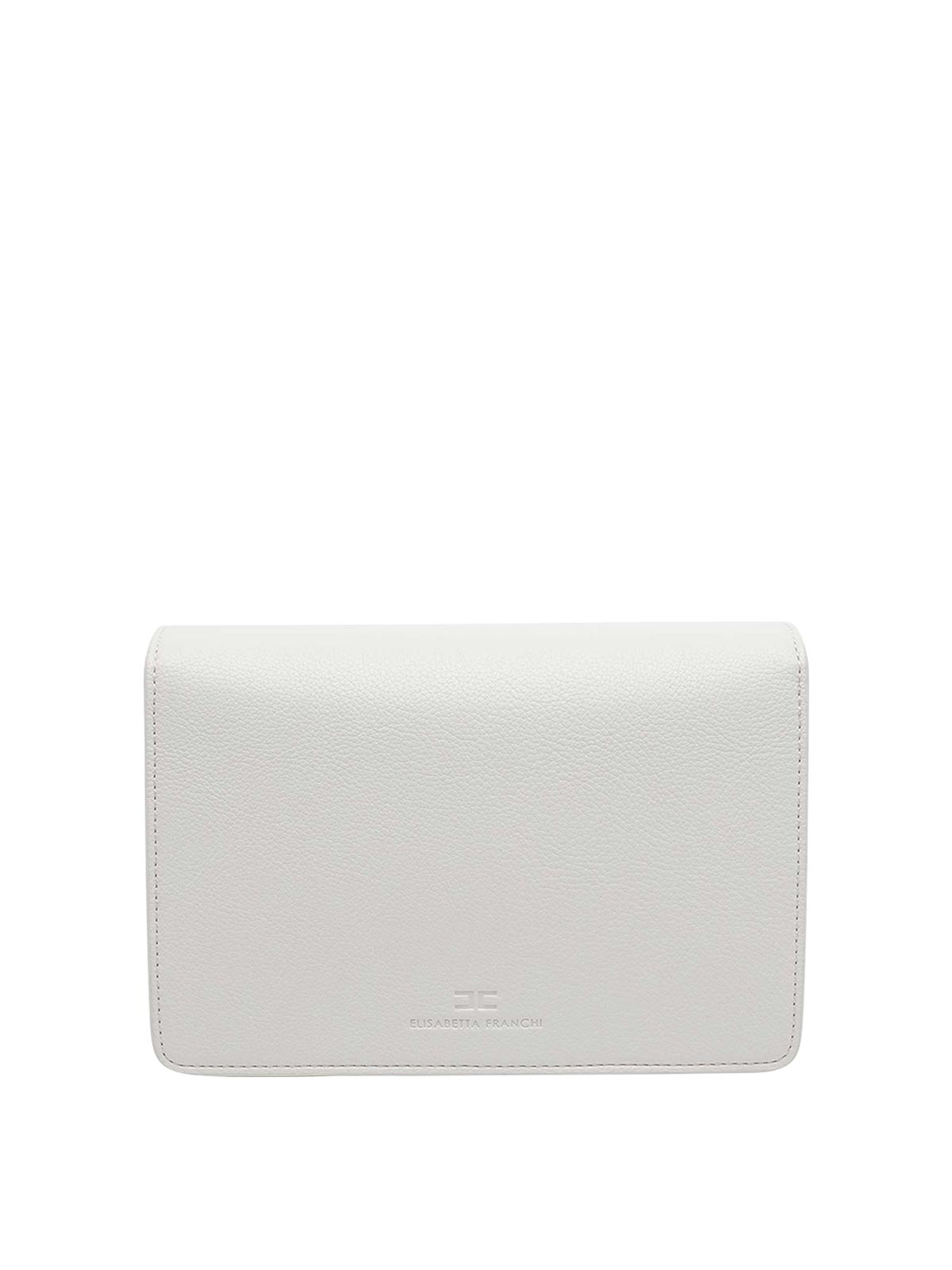 Elisabetta Franchi ホワイトクロスボディバッグ、マグネットクロージャー、内側にファスナーポケット、オープンポケット1つ、チェーンショルダーストラップ、フロントにロゴ
