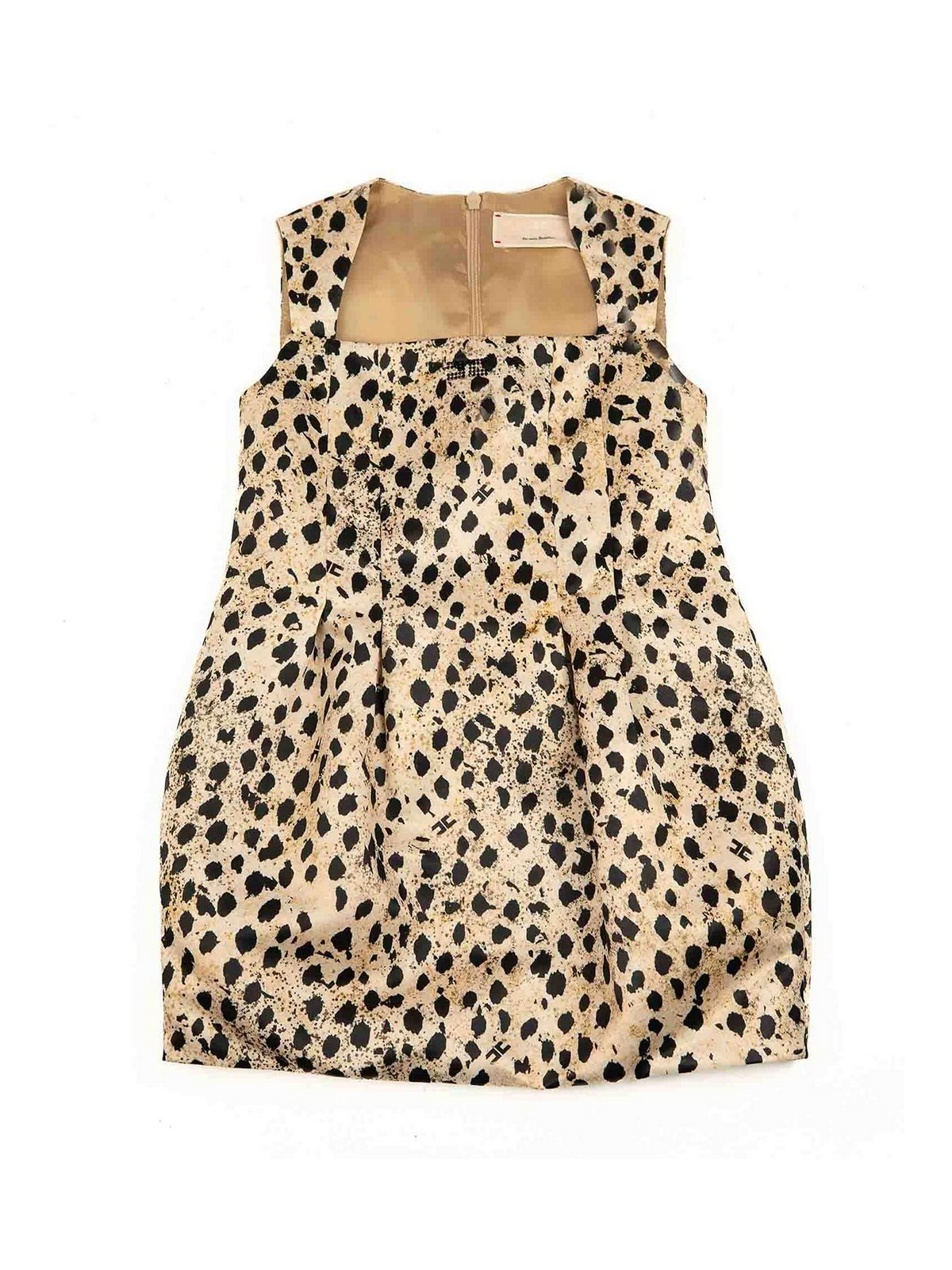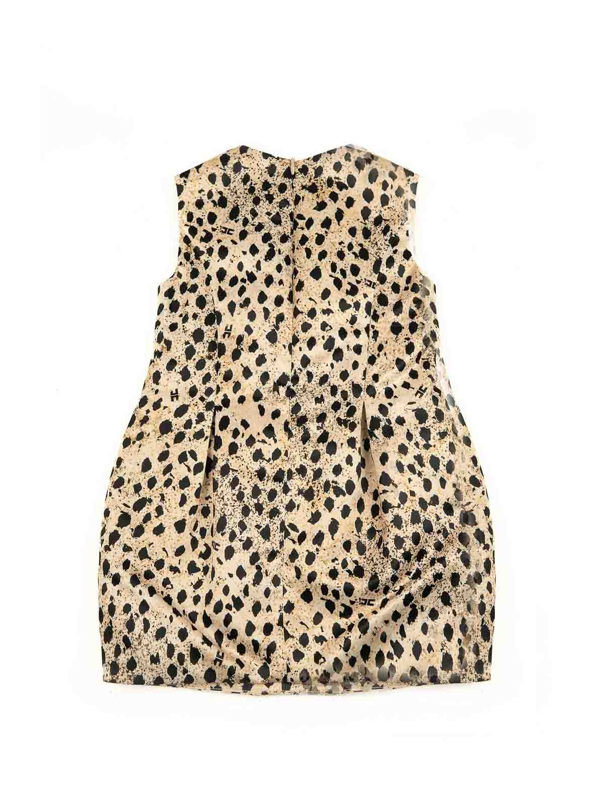 アニマル柄のドレス。両サイドにノースリーブのプリーツロゴがあしらわれ、後ろにファスナーが付いています。