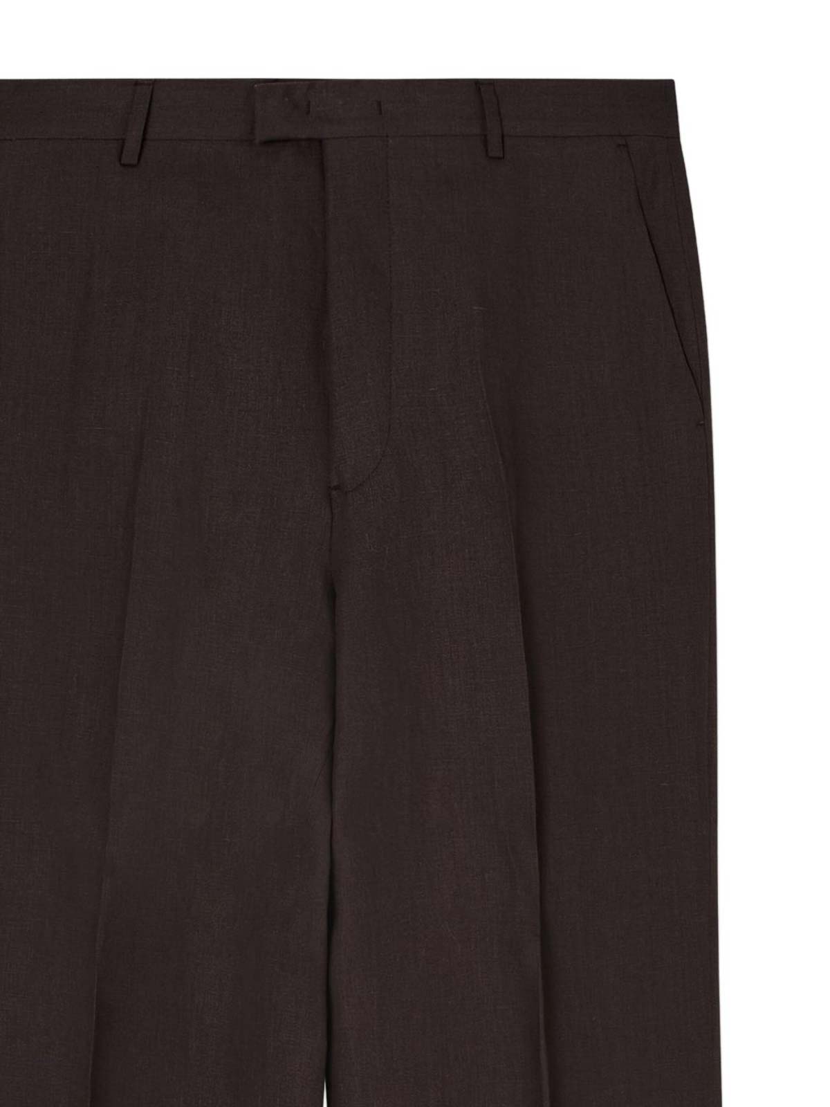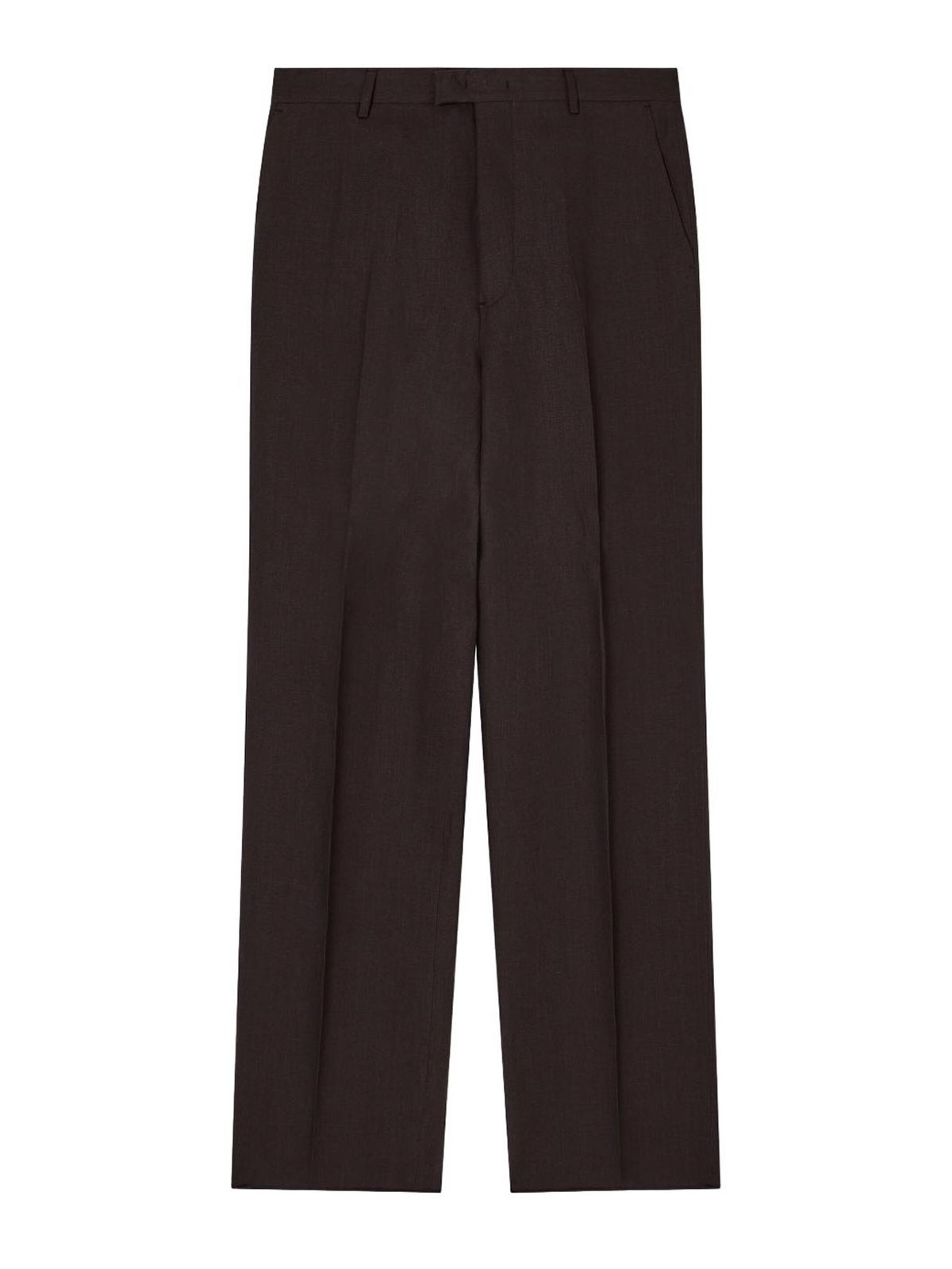 ダークブラウンプリーツフロントサイドポケットボタンフライ