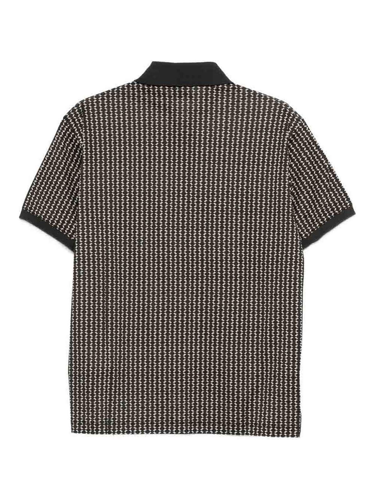 茶色の幾何学模様ボタン留め半袖ポロネック