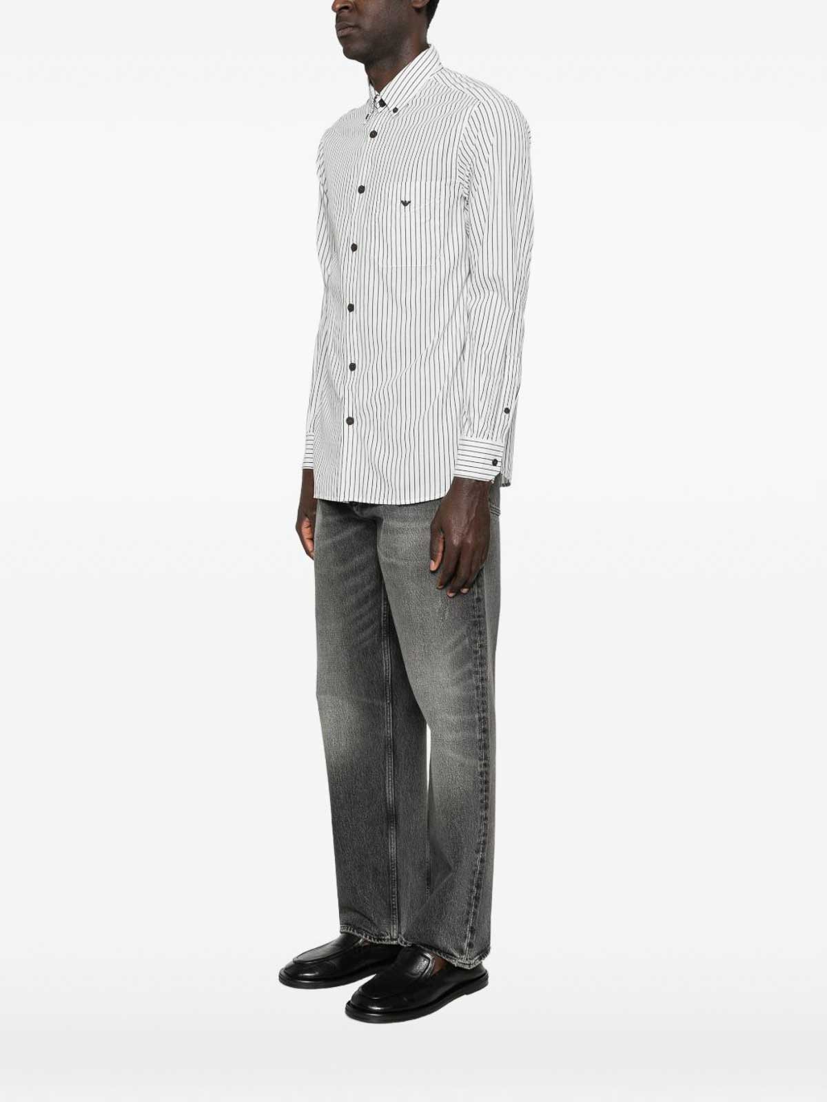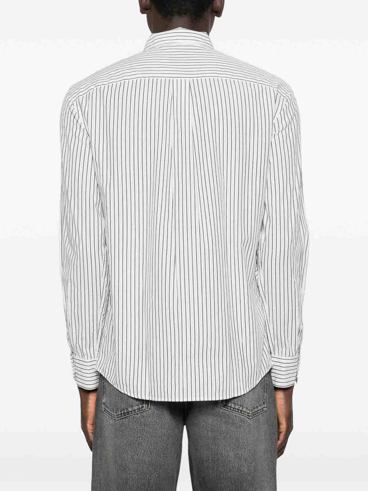 ホワイト/マルチカラーバーティカルストライプロゴディテールボタン留め長袖ボタン付きカフス