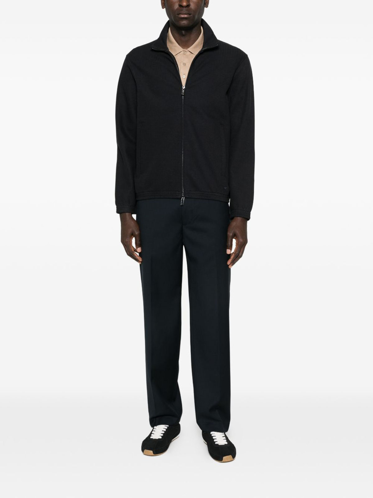 ブルージップクロージャーフロントポケット長袖リブ付き裾リブ編みカフス