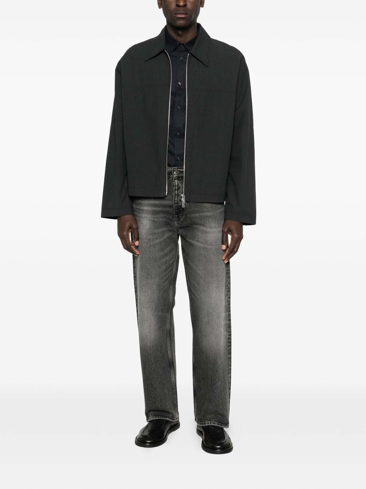 ブルーコットンテクスチャード仕上げボタン留め長袖ボタン付きカフスクラシックカラー